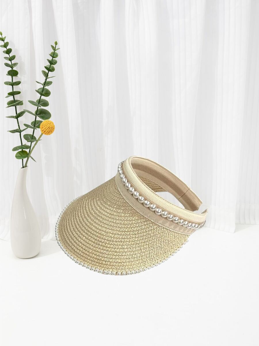 Stroh Schirmmütze mit Kunstperle Dekor,