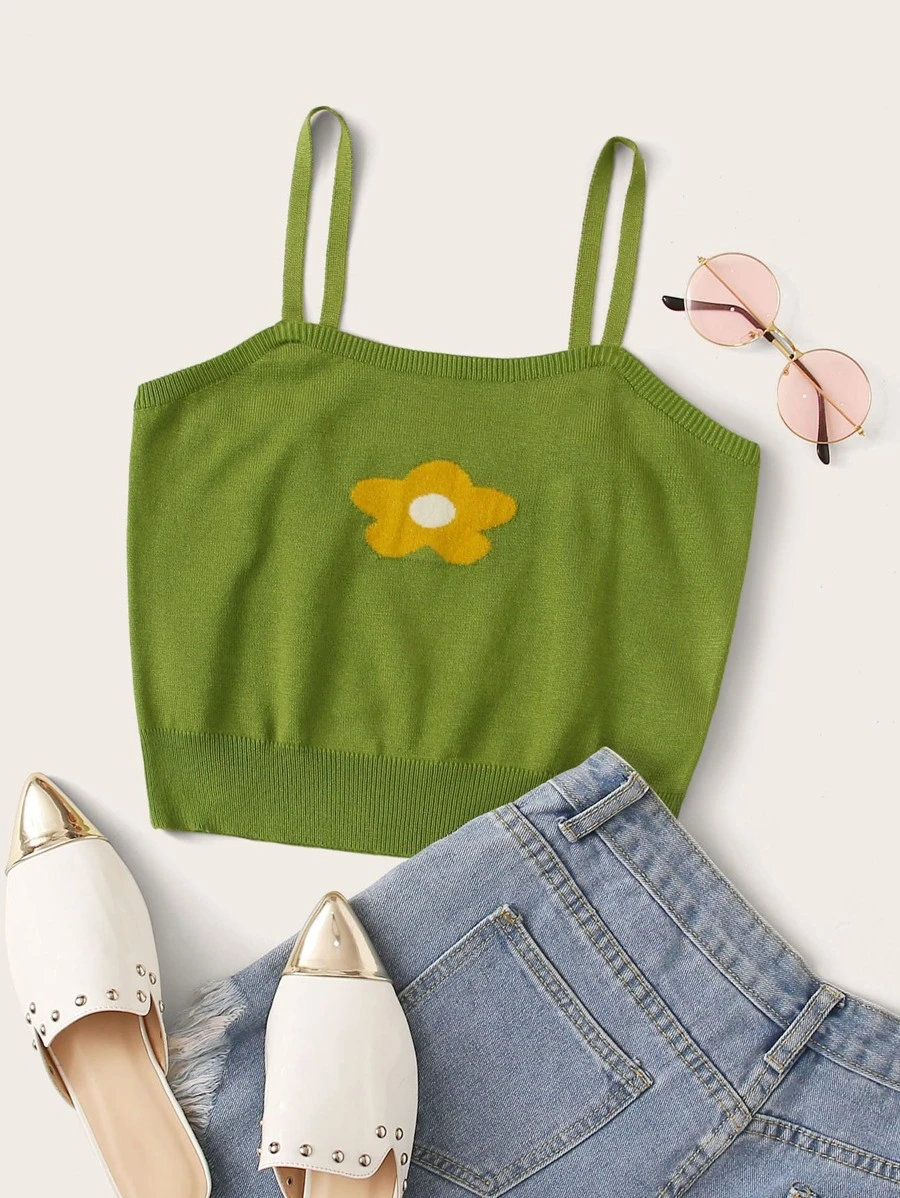 Strick Crop Top mit Blumen