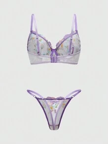 Fairycore Blumen Stickerei Kontrast-Farben Bügel-BH Sexy Wäsche Set für Frauen