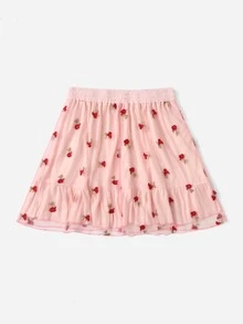 Rock mit Blume Stickerei, Kontrast Netzstoff