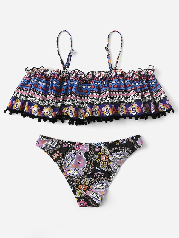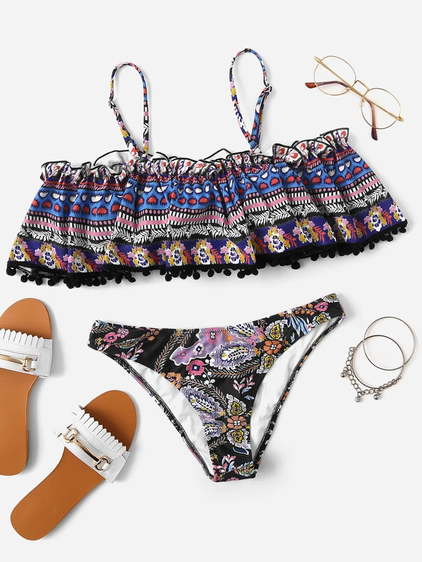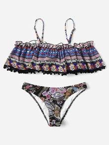 Bikini Set mit Blumen, Falten und Schößchen