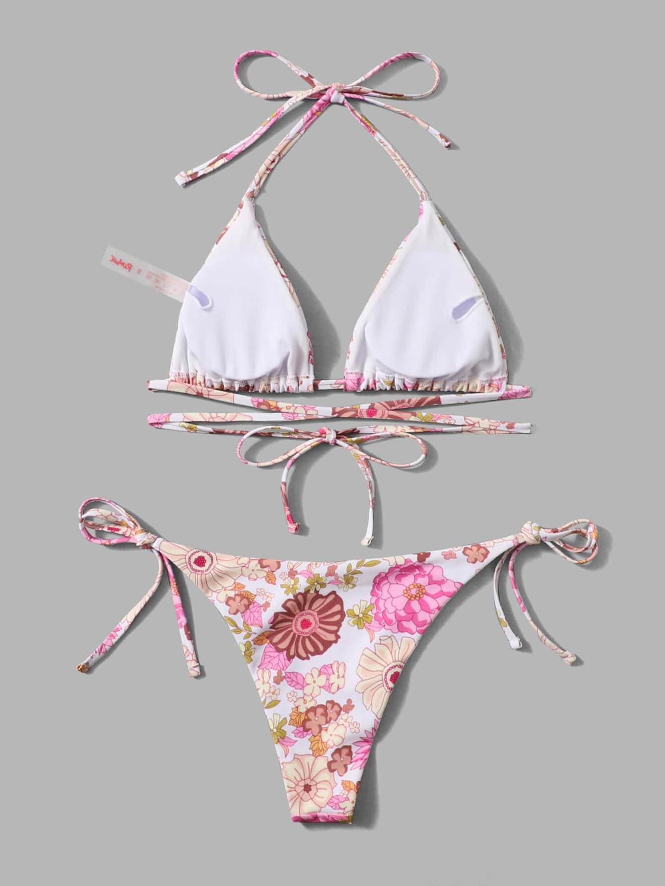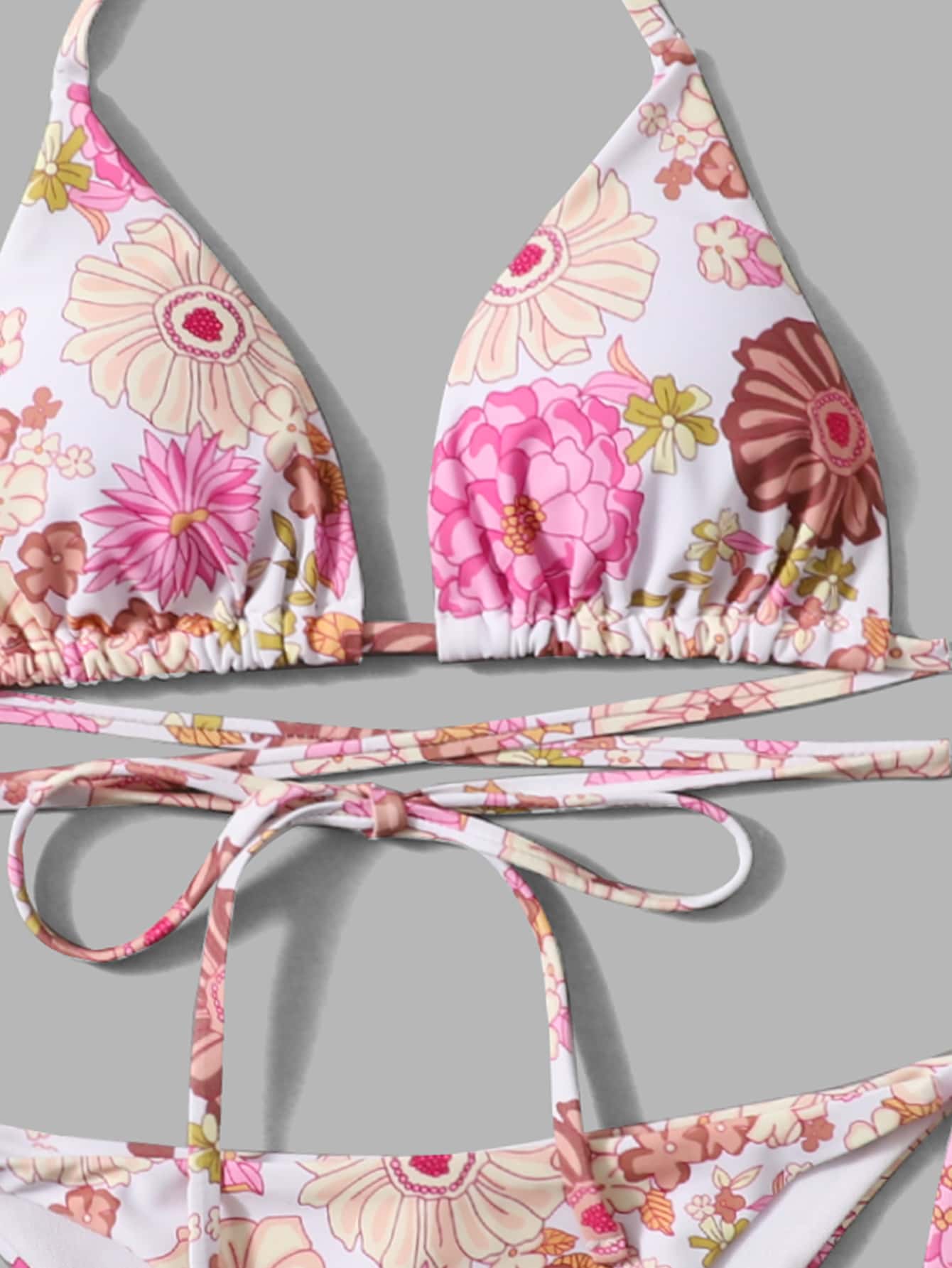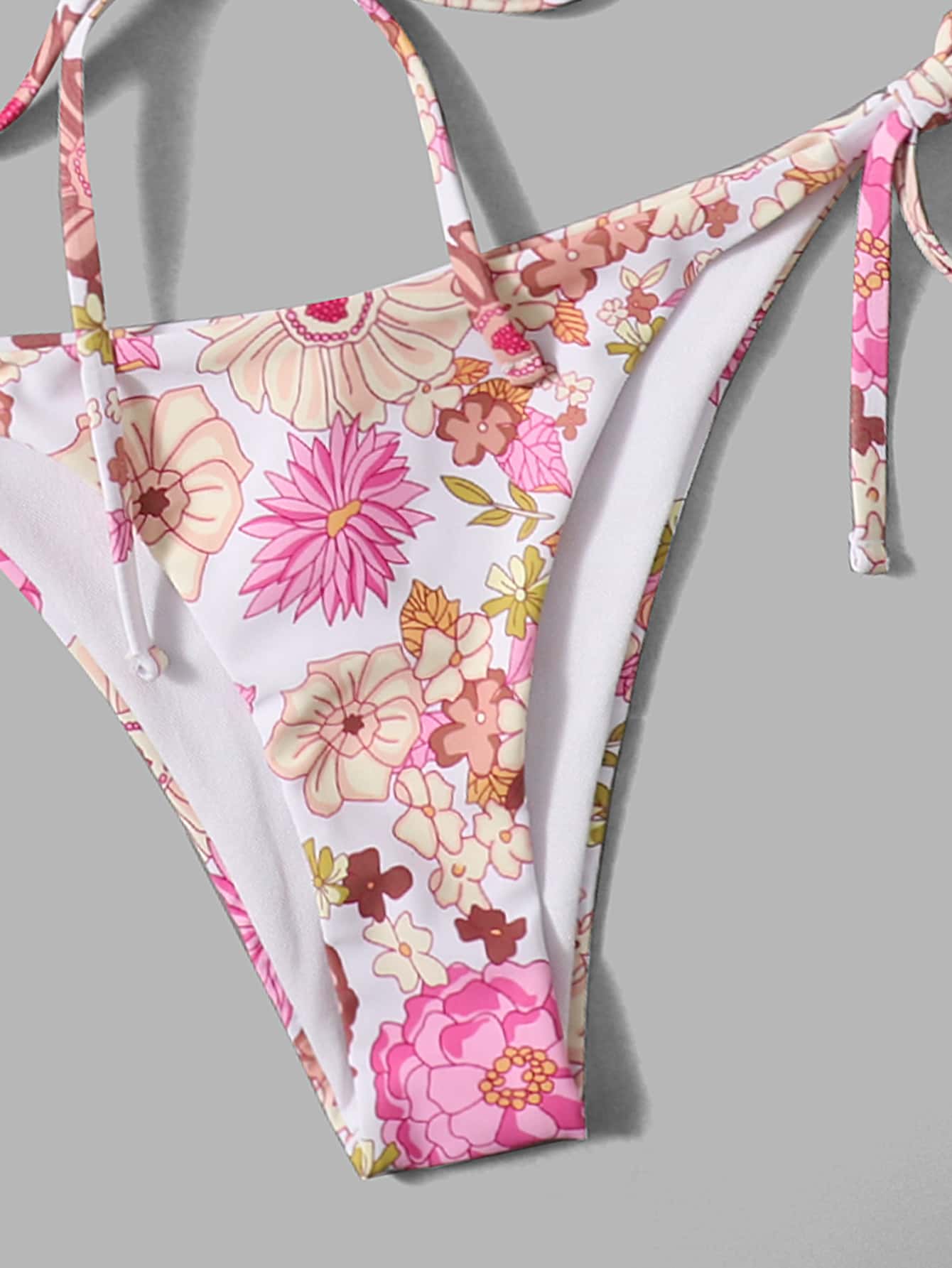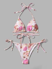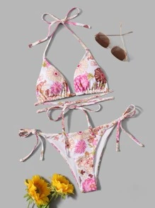 Blumengrafik-Bikini mit seitlichen Schnüren