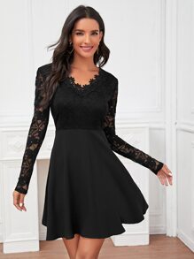 Einfarbiges figurbetontes Kleid mit Blumen Spitzen