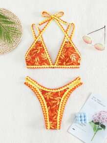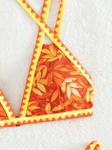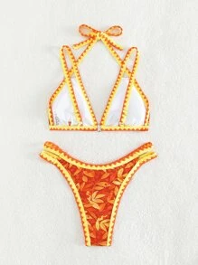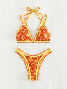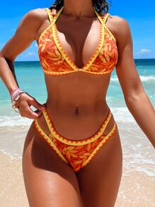 Dreieckiges Bikini-Set für den Sommer am Strand mit Blumenmuster und Ziernaht