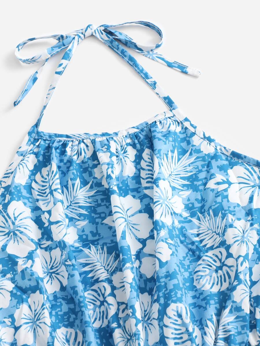 Romper mit Neckholder, Blume & Tropen Muster, Kreuzgurt auf Rücken
