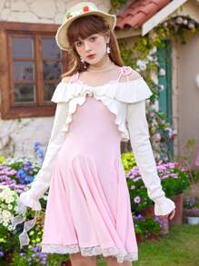 Cardigan mit Volant Ärmeln, Rüschenbesatz,