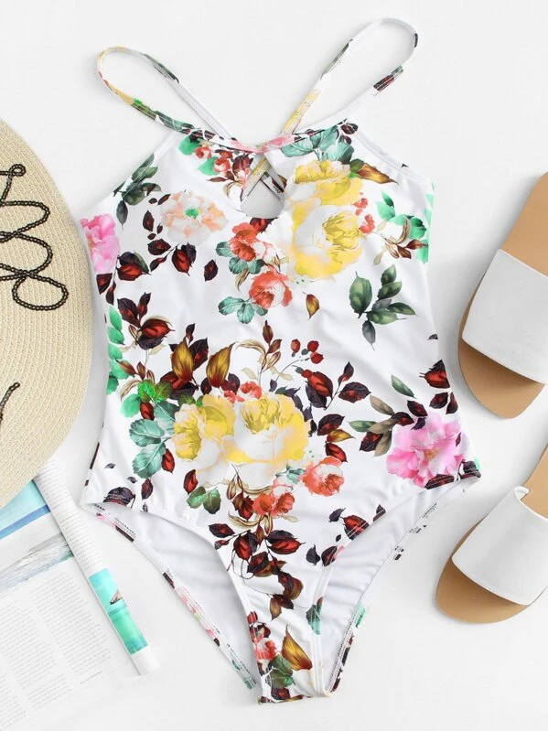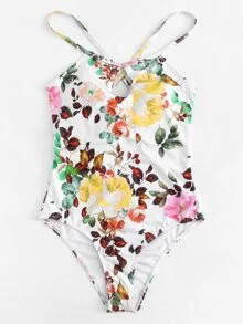 Badeanzug mit Blumenmuster und Schleife
