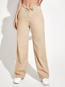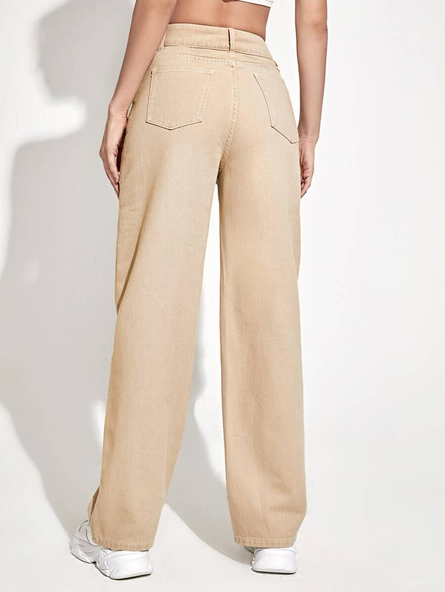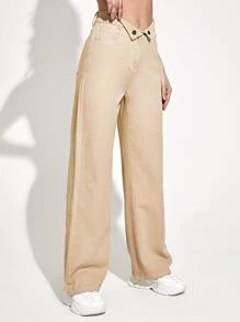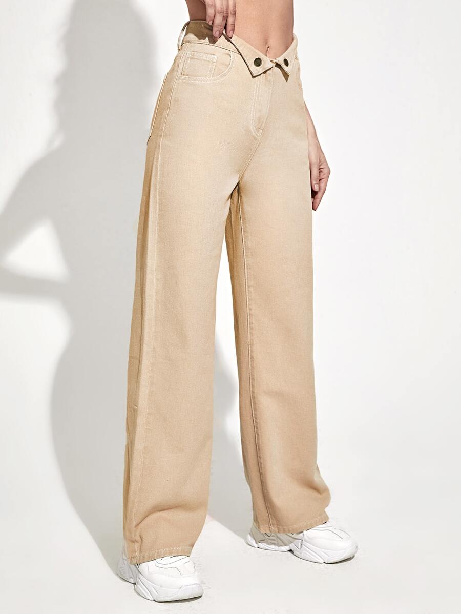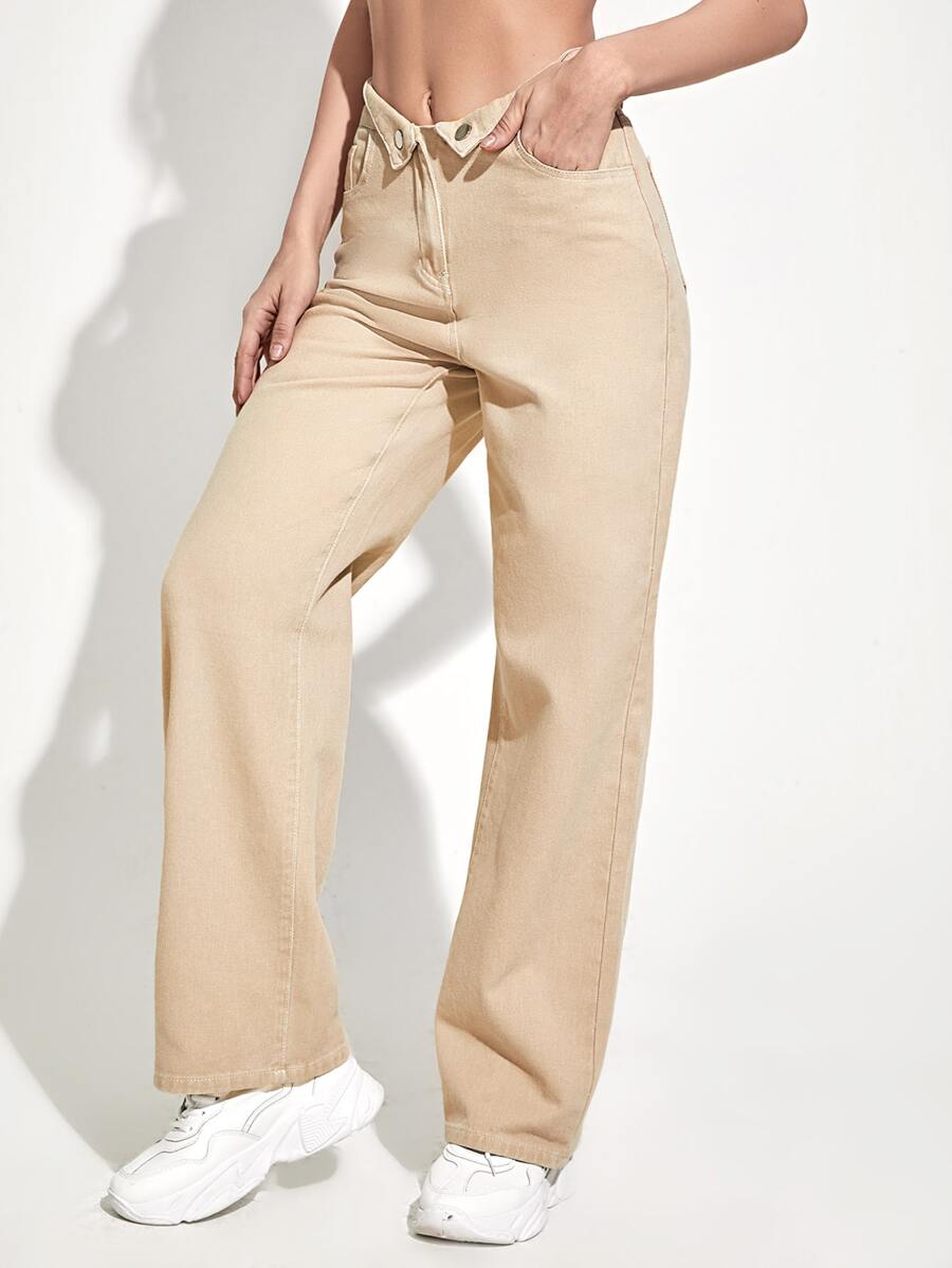 Jeans mit Umschlag-Taille, breitem Beinschnitt