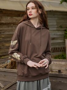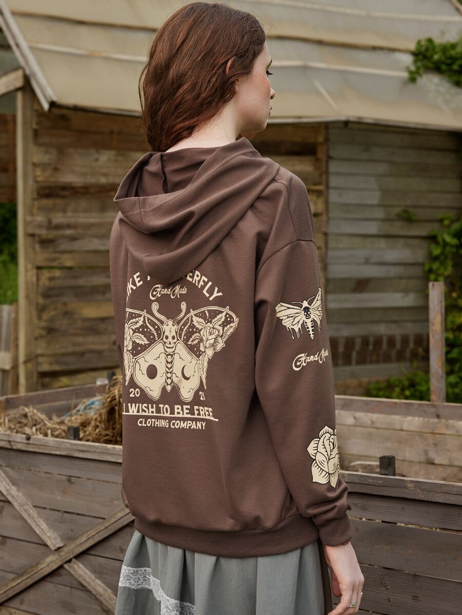 Folluther Hoodie mit Schmetterling Schädel Grafik, Drop Shoulder