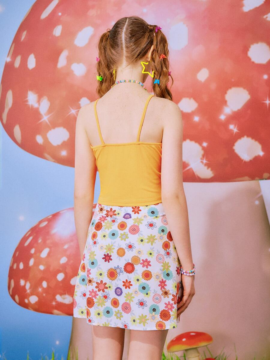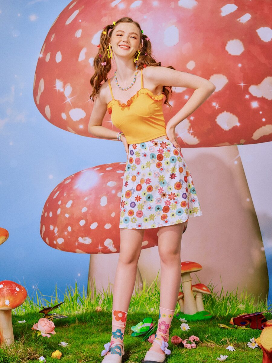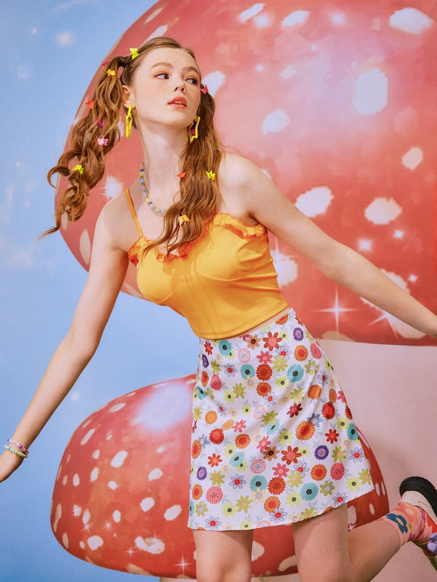 Cami Top mit Rüschen & Rock mit Blume Muster