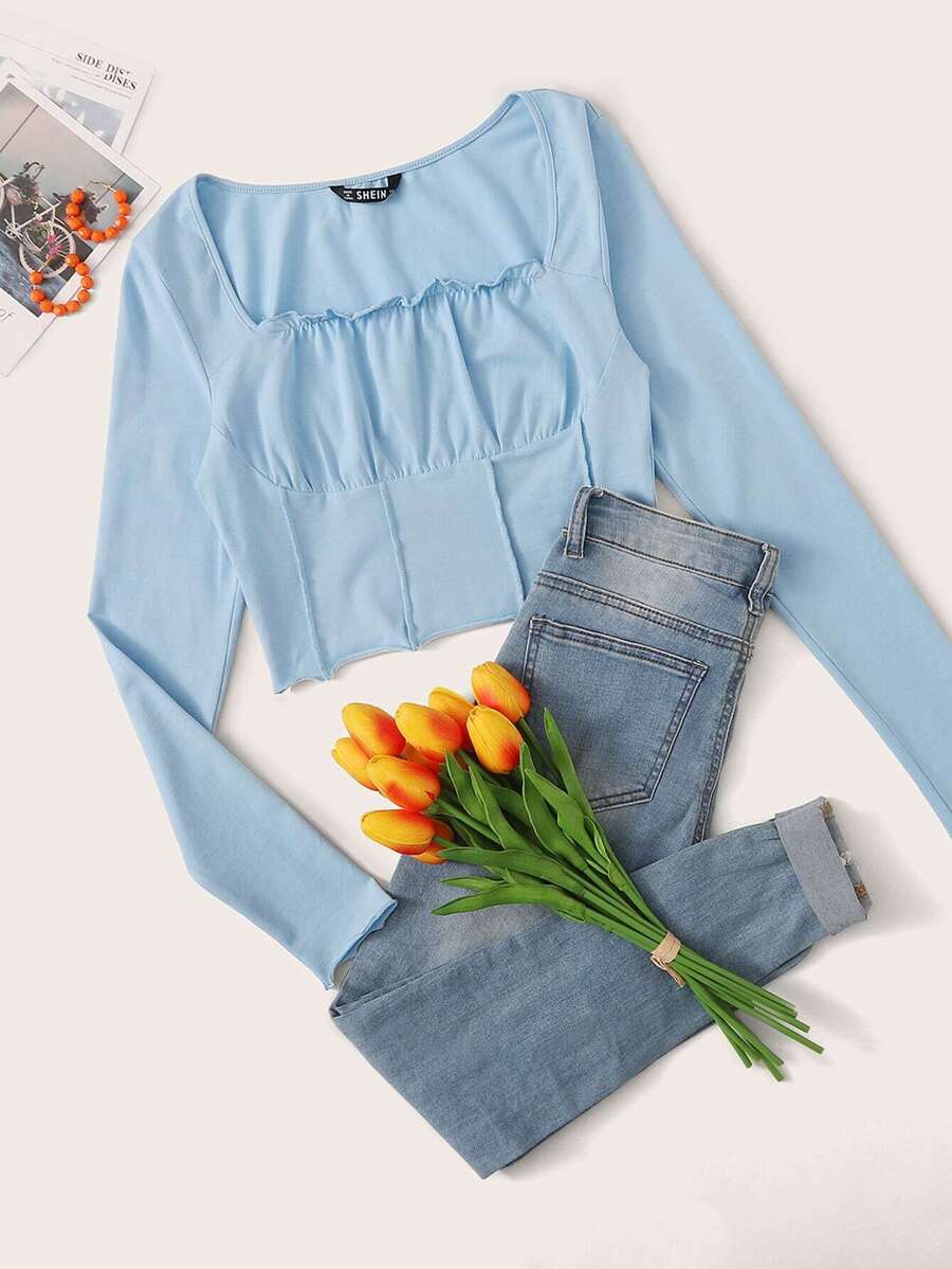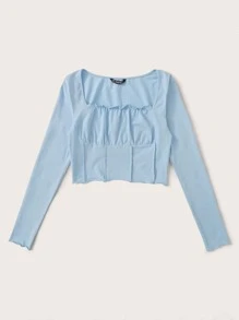 Figurbetontes Crop T-Shirt mit Rüschen