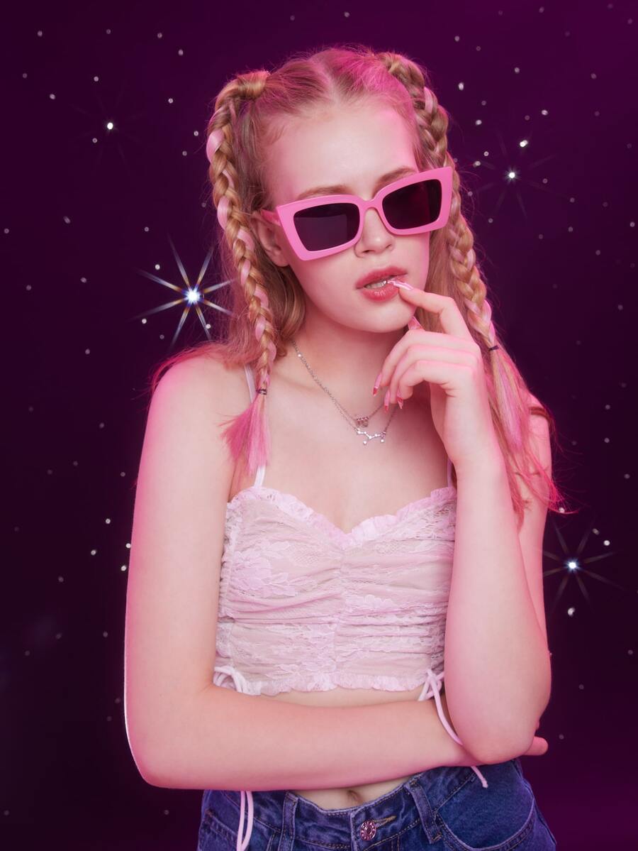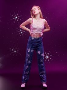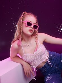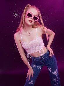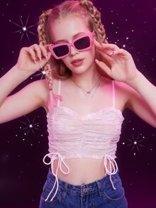 Cami Top mit Rüschenbesatz, Knoten vorne und Spitzen