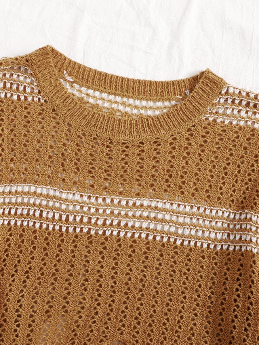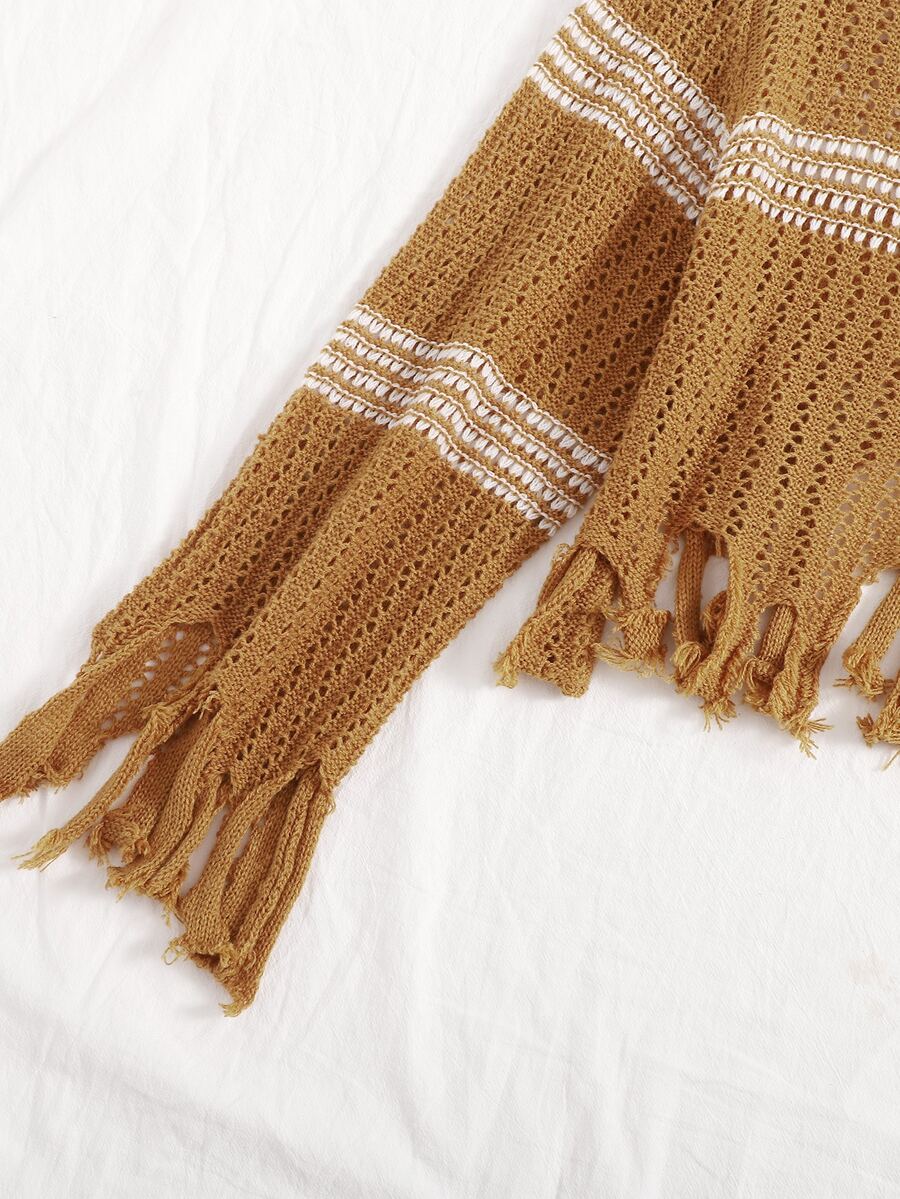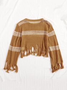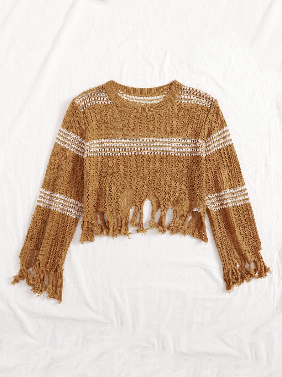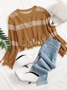 Strick Crop Pullover mit Fransen und Streifen