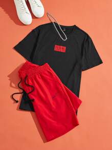 GENTILAND Männer Buchstaben Grafik, T-Shirt mit & Tunnelzug, Shorts mit