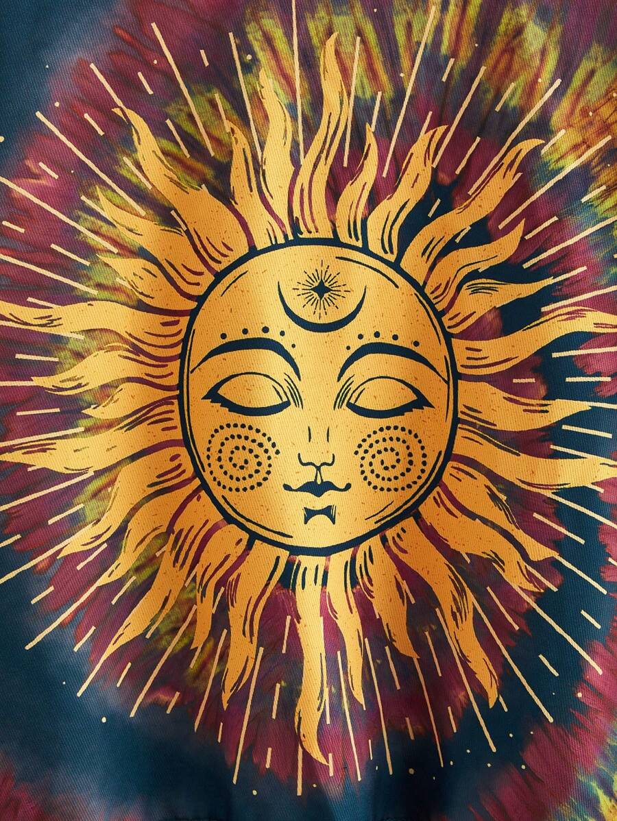 Garabateo Sonne Muster, Batik, Fransen, Umhang Top