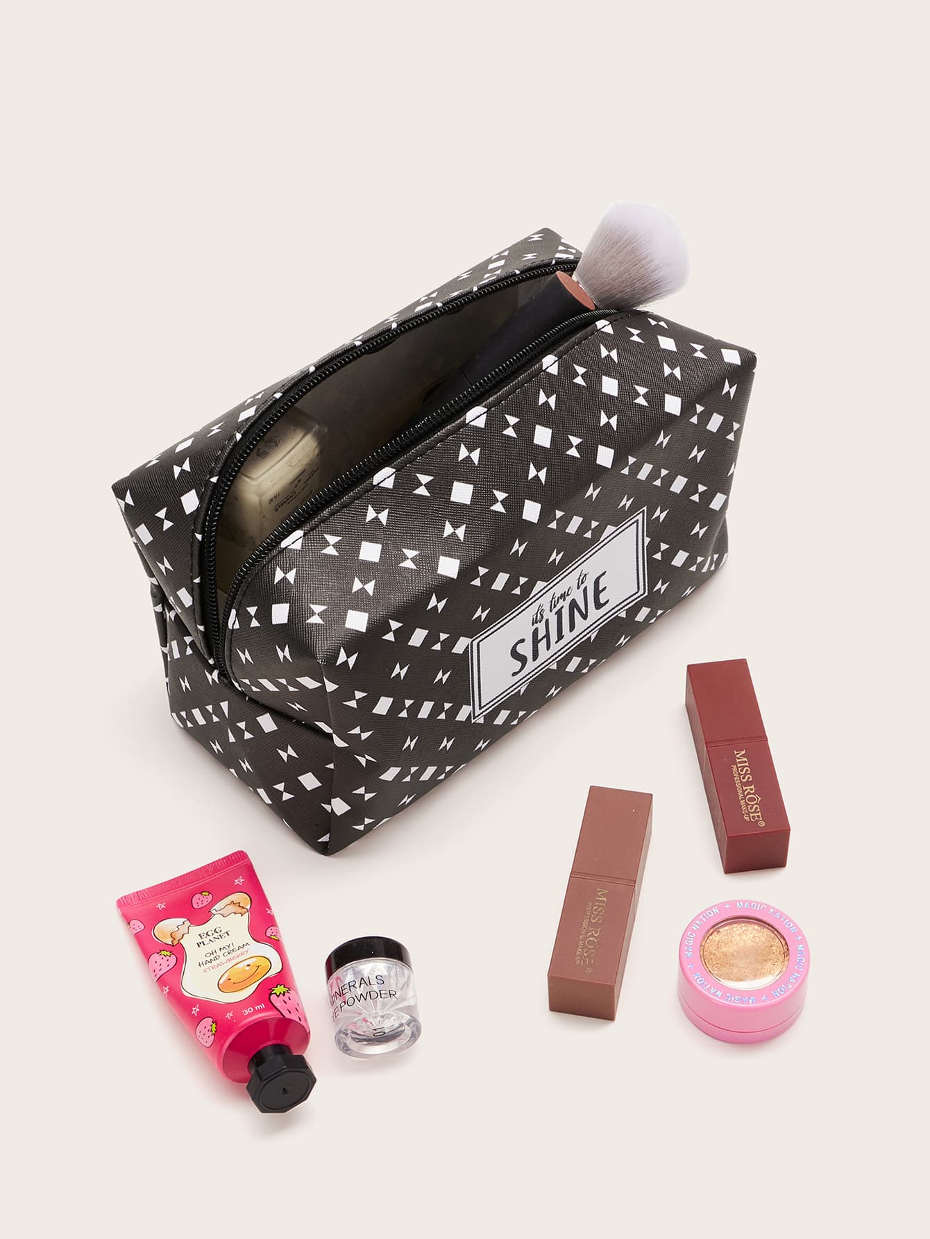 Make-up Tasche mit geometrischer & Buchstaben Grafik