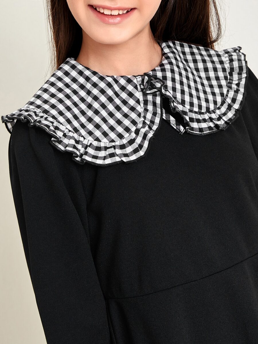 Kleid mit Rüschenbesatz, Karo Muster und Peter Pan Kragen