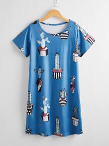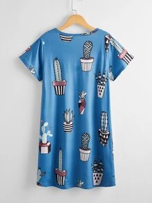 T-Shirt-Kleid mit Kaktus Muster