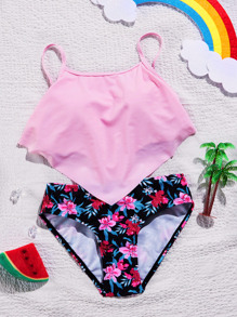 Mädchen Badeanzug mit Blume Muster und Zipfelsaum