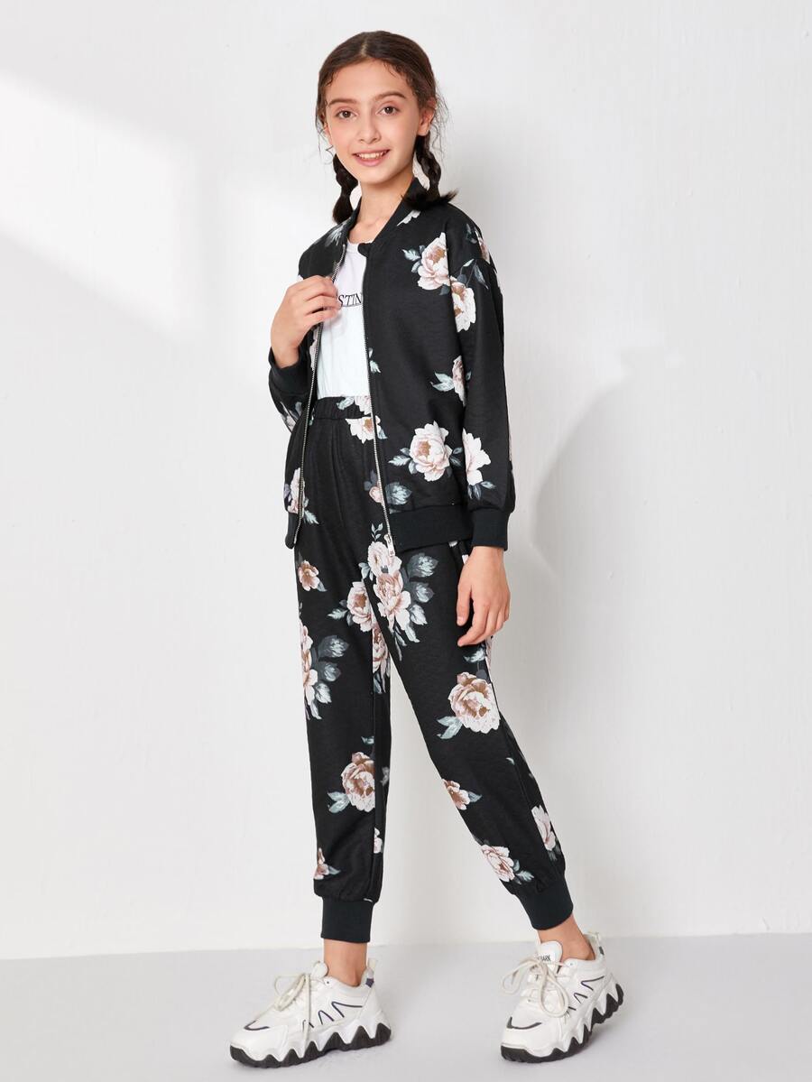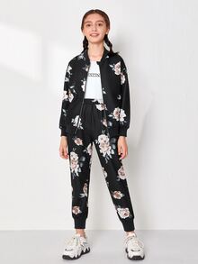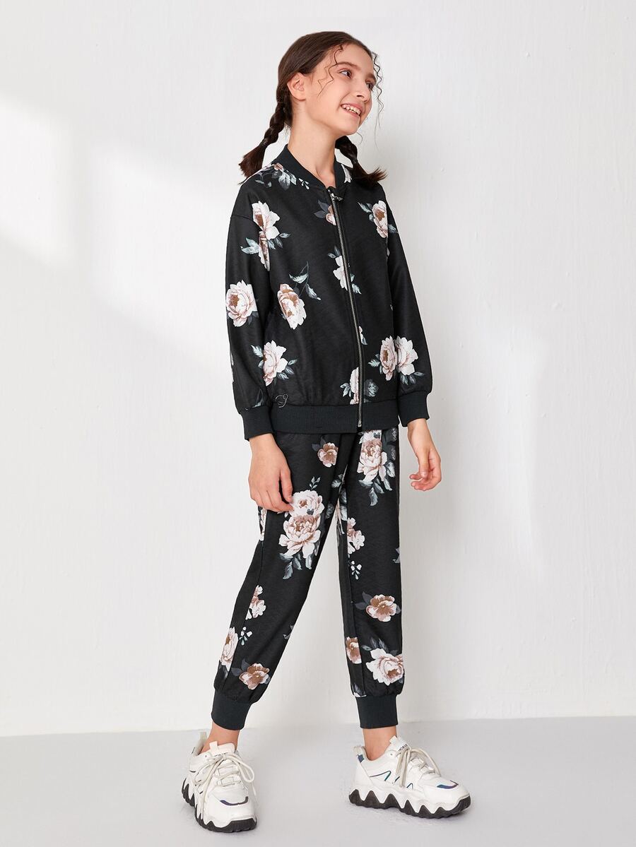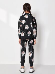 Gesteppte Bomber Jacke & Jogginghose Set mit Blumen Muster