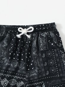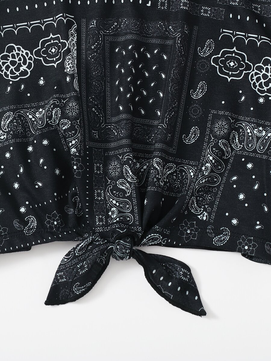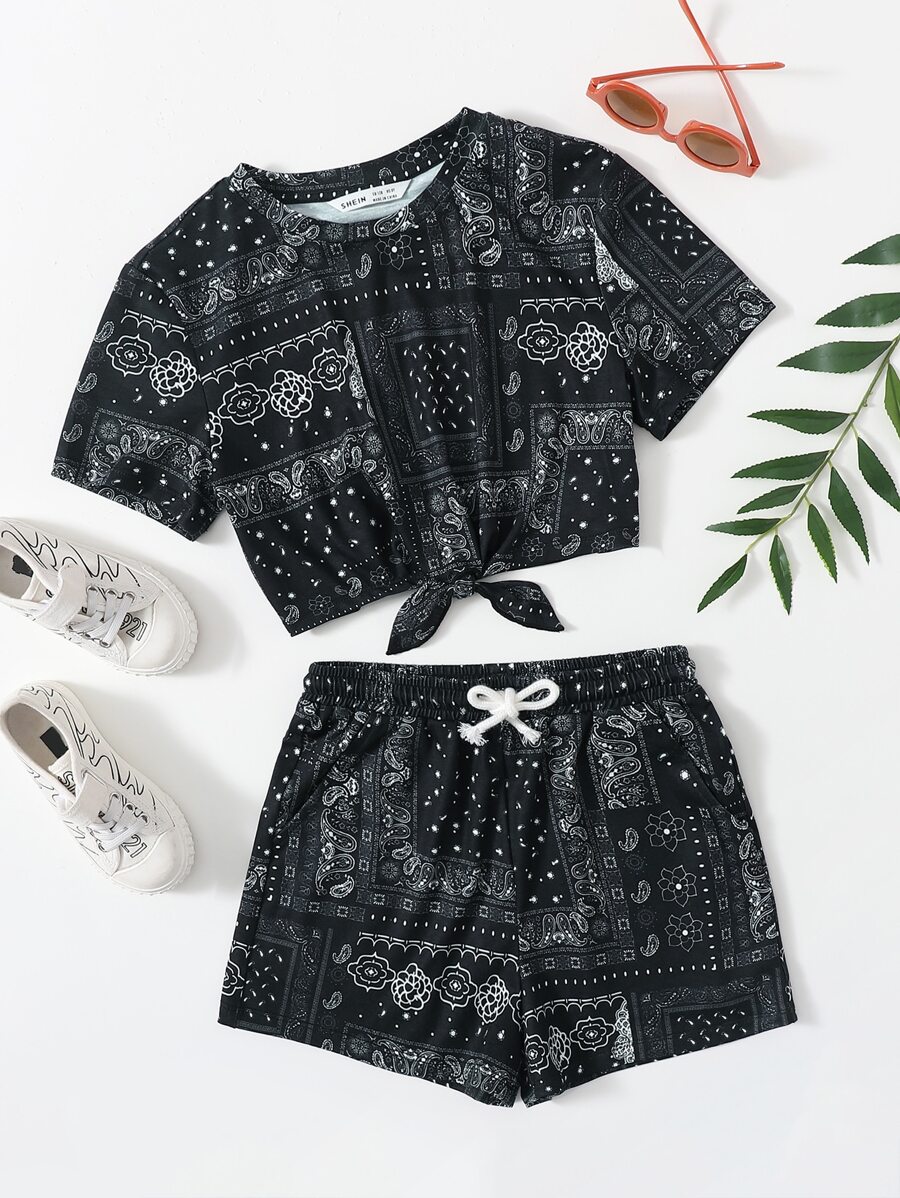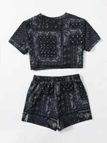 T-Shirt mit Paisley Muster, Knoten und Shorts Set