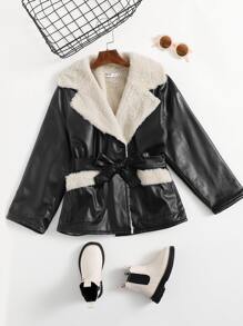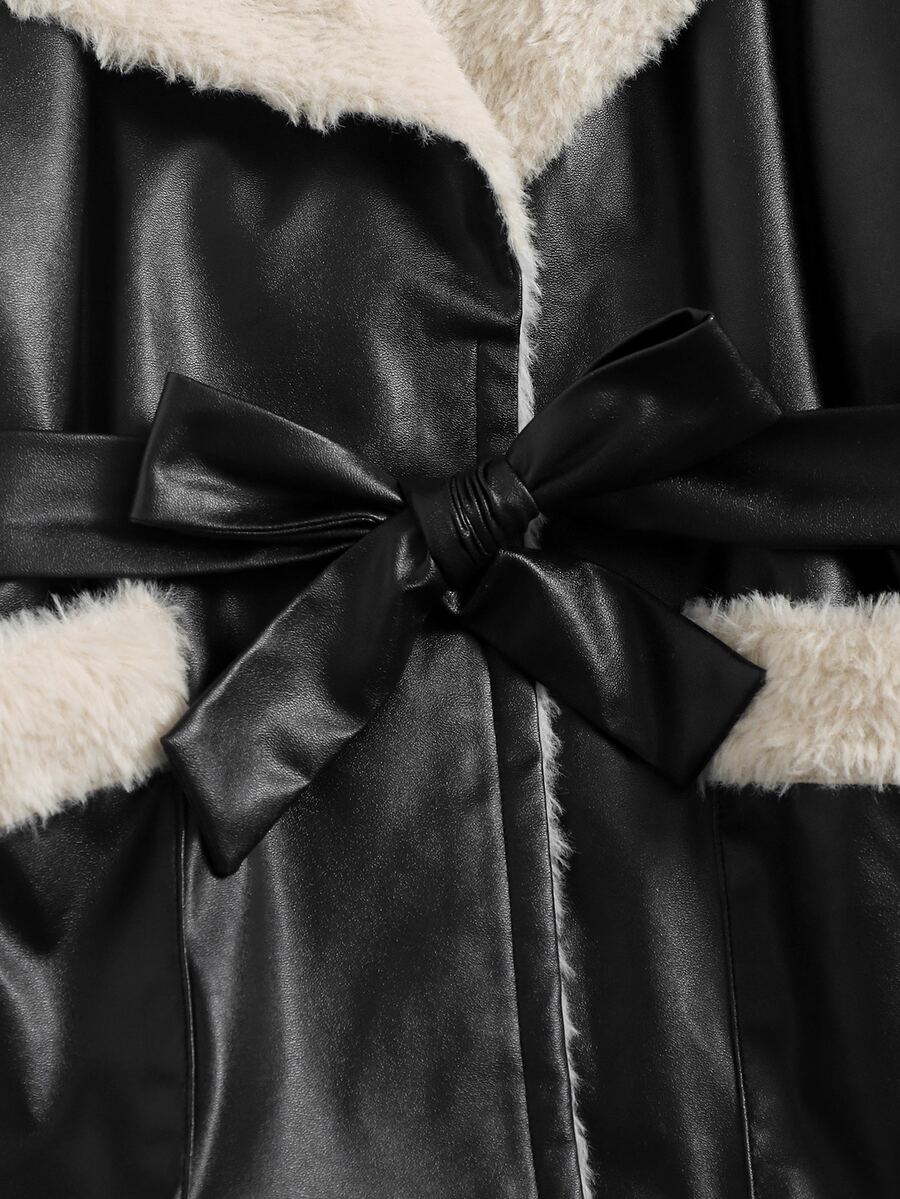 PU Leder Mantel mit Gürtel und Teddy Futter