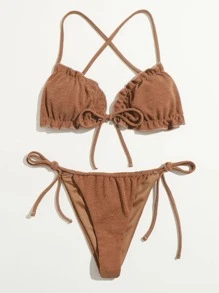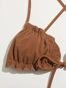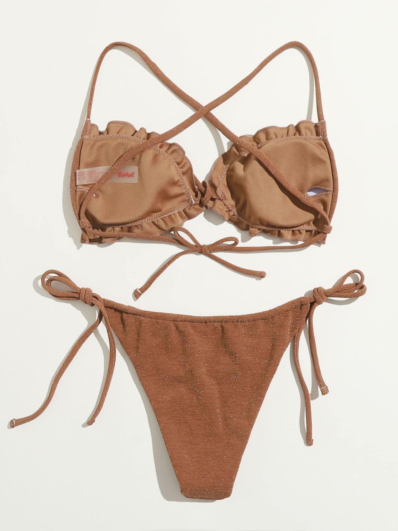 Glimmer Fransen Bikini Set mit Bindeverschluss für den Sommer am Strand
