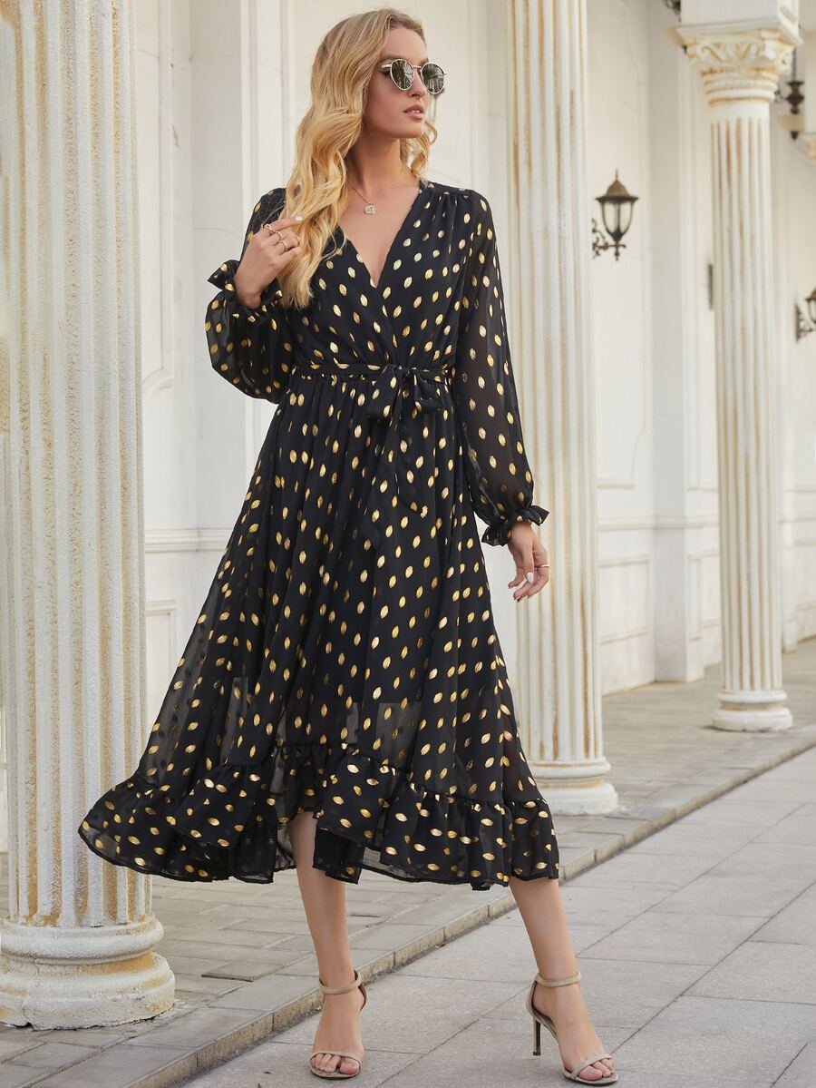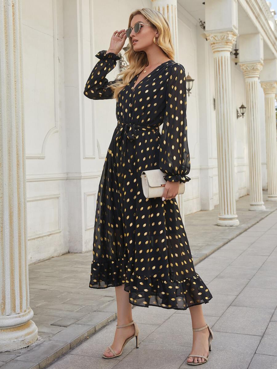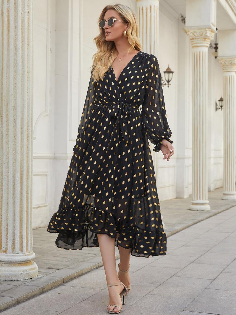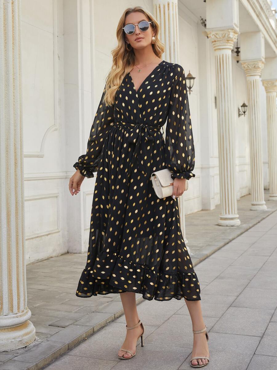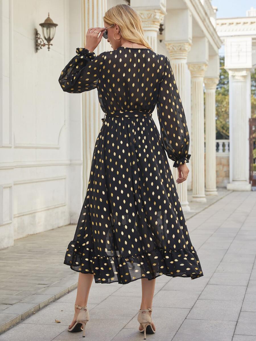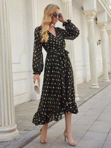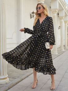 Chiffon A-Linie Kleid mit Punkten Muster zum Binden