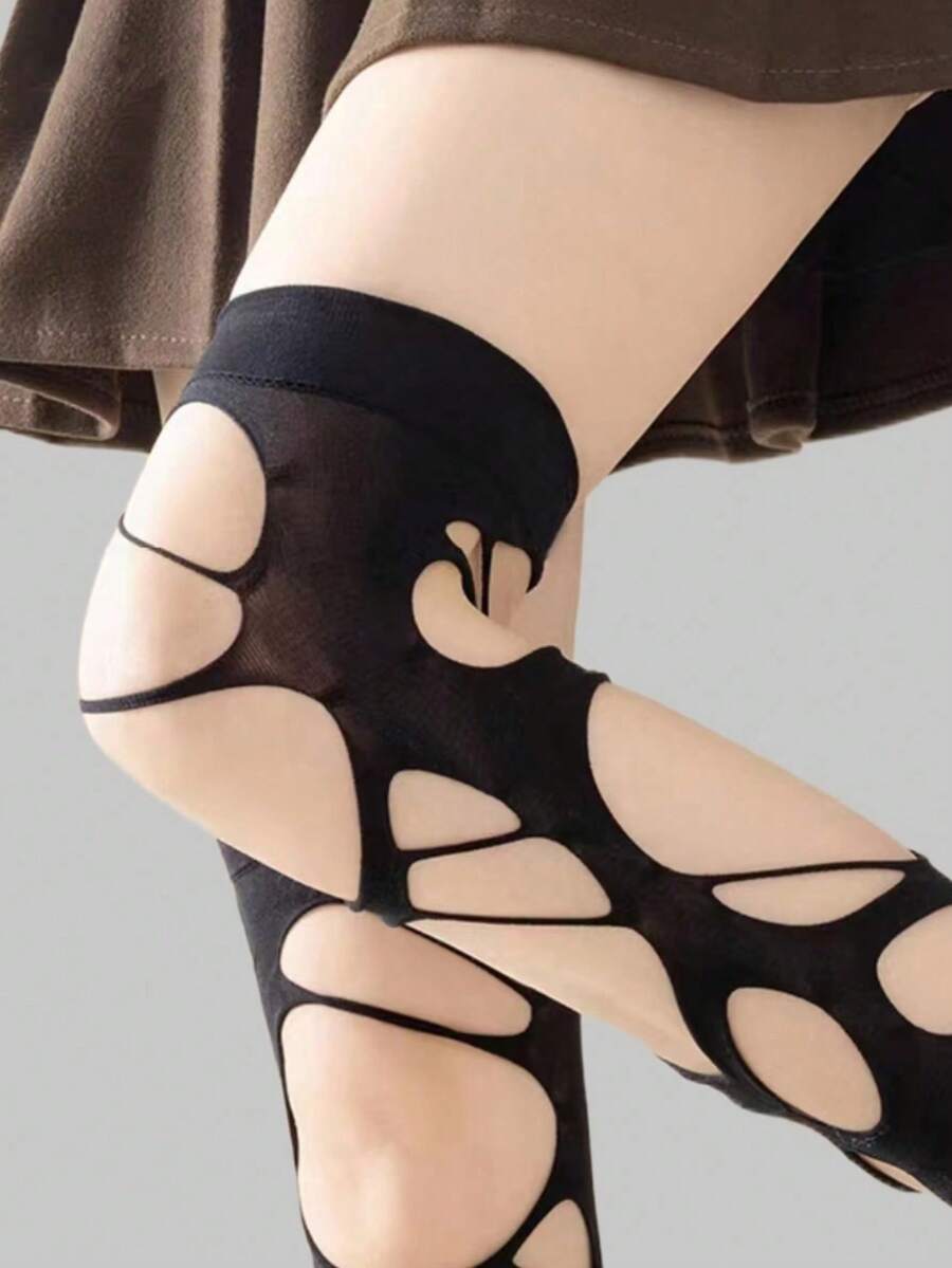 Goth 1 Paar Schwarz Saisonale Damen Schwarz zerrissene Over-The-Knee-Socken