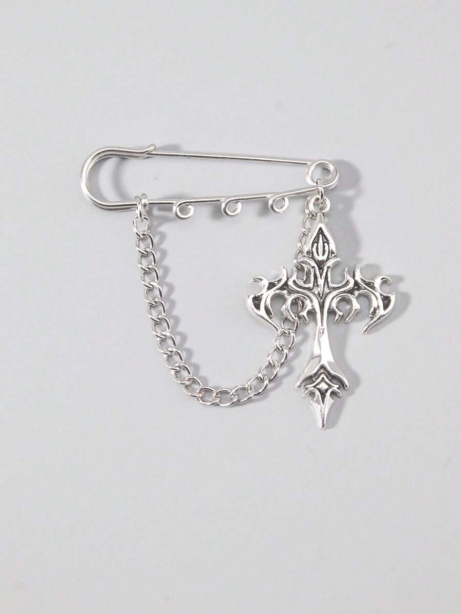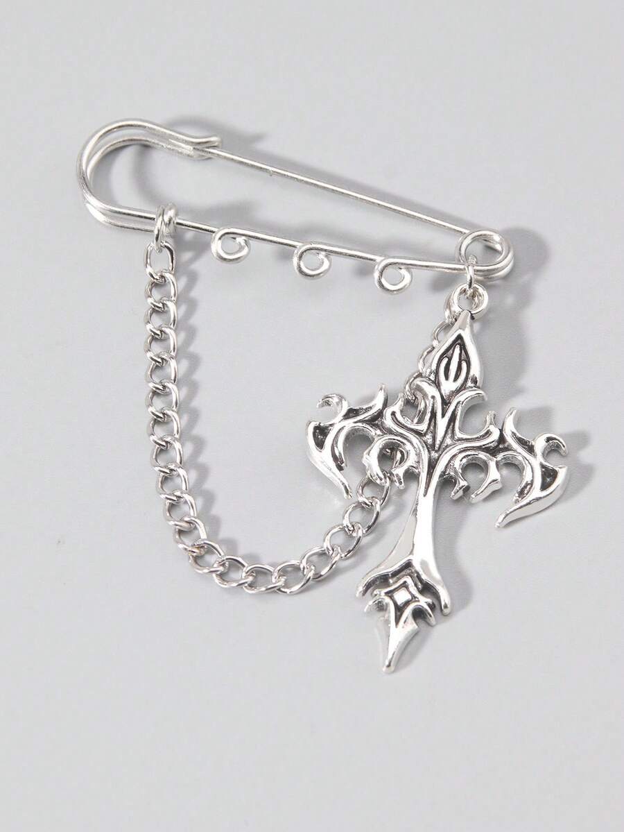 Goth 1 Stück Punk personalisiertes Flammen Kreuz, Hip Hop Rock, Brosche, Taschenhänger, große Gürtelnadel, Sicherheitsnadel Anstecknadel.