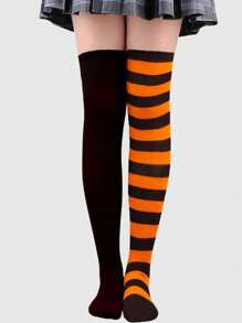 Goth Frauen 1 Paar Überknie Strümpfe mit Streifen Muster,