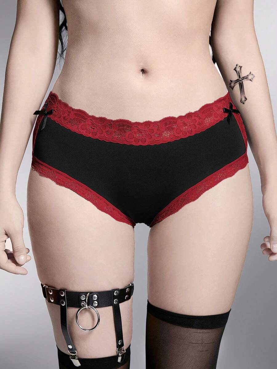 Goth 1 Stück schwarze Baumwoll-Spitzenborte Damen Slip