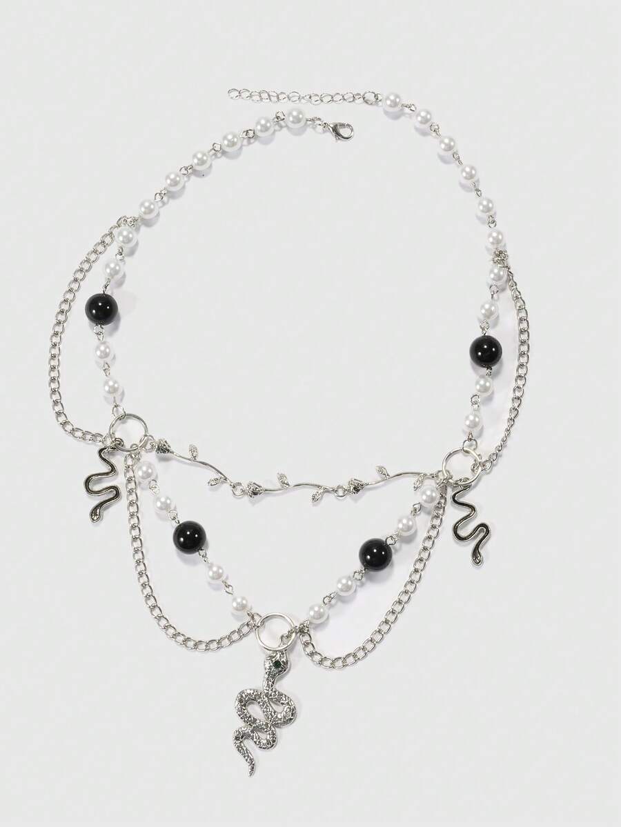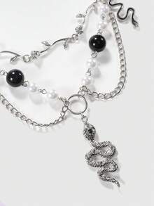 Goth 1 Stück Mehrschichtige Halskette Funky Kupferlegierung Schlange & Kunstperle Dekor, Für Frauen für Date Geschenk