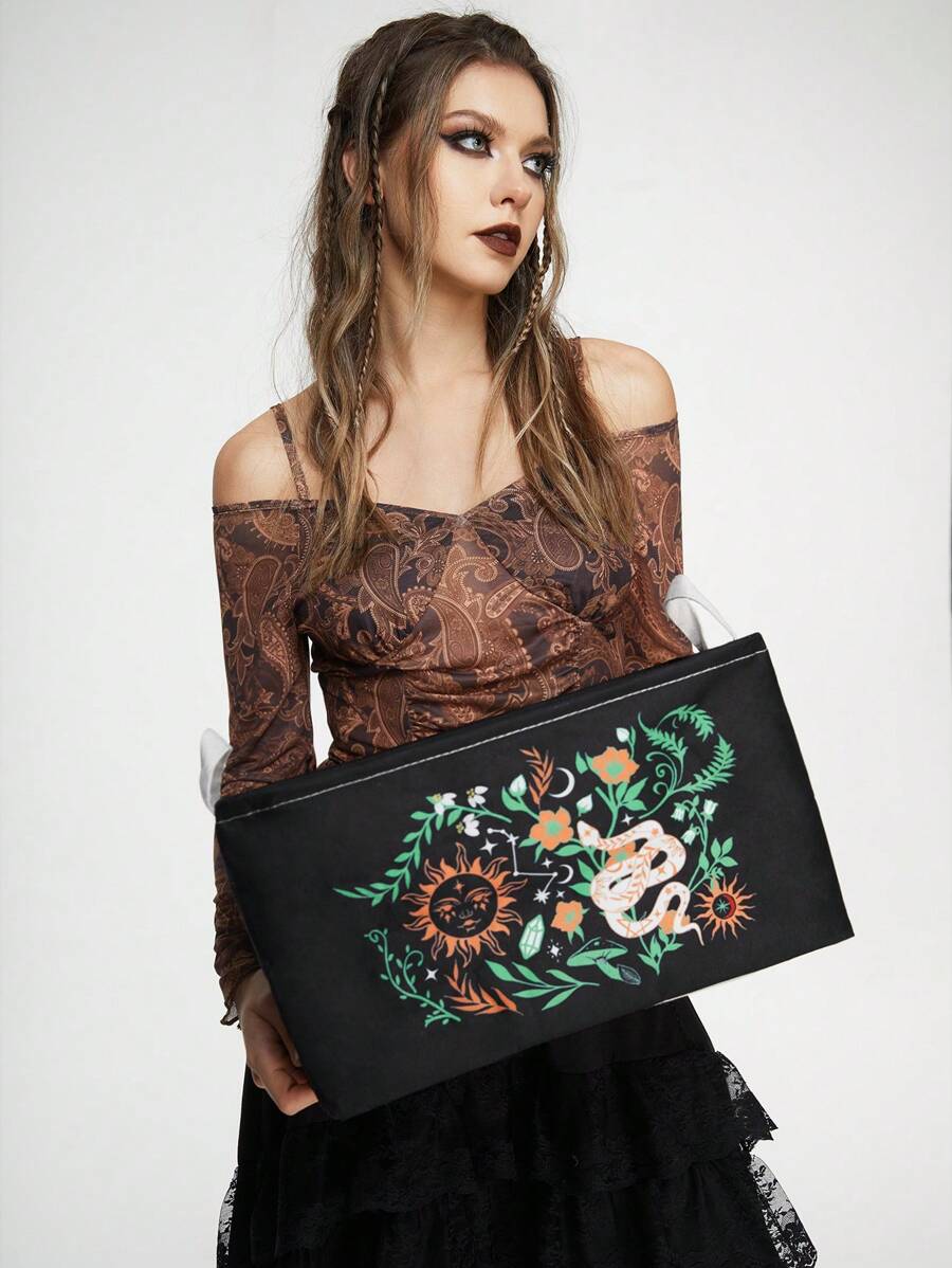 Goth 1 Stück Pflanzen, Sonne, Mond Und Schlange Muster Aufbewahrungsbox