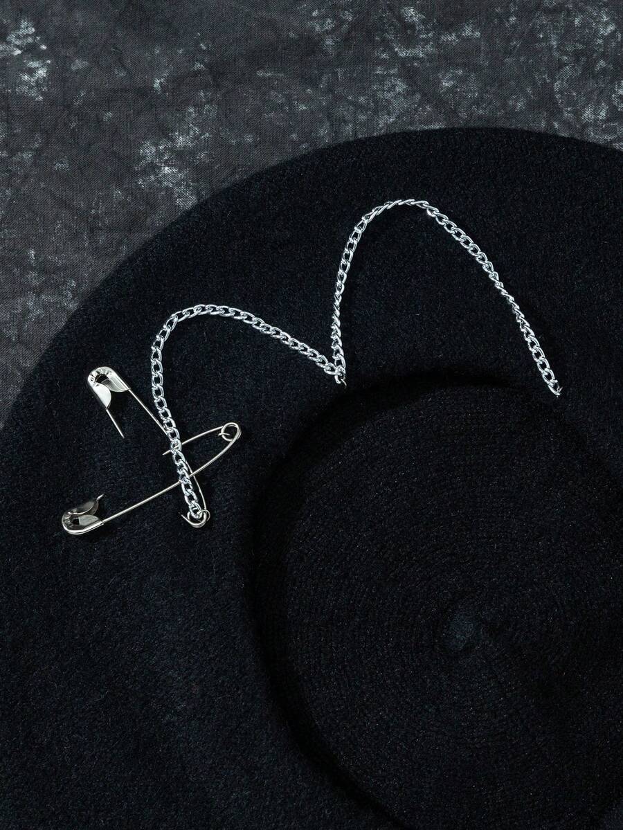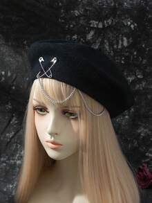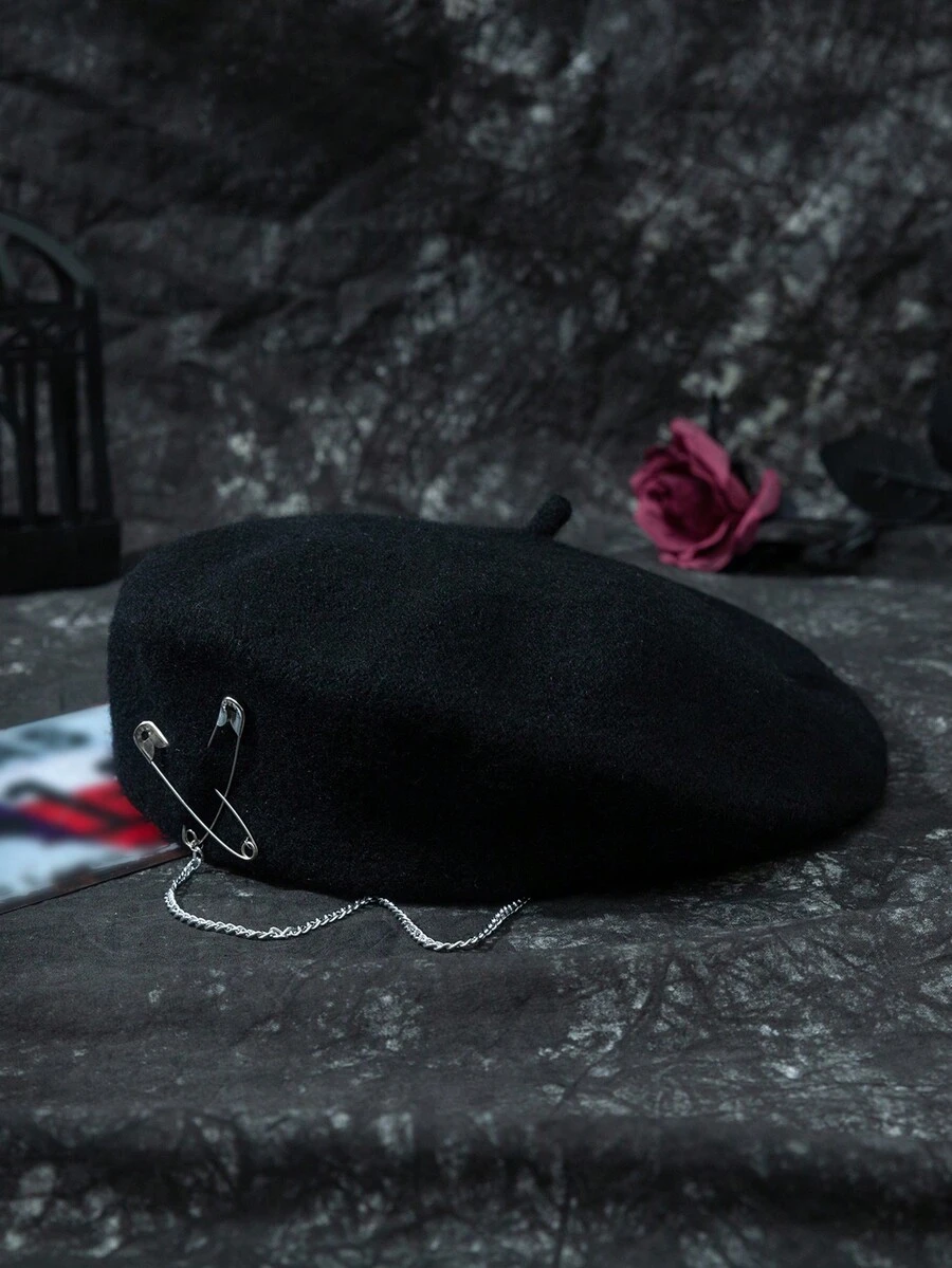 Goth 1 Stück Damen Baskenmütze mit Kette und Anstecknadel Dekor