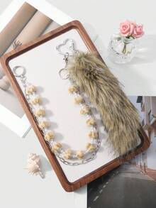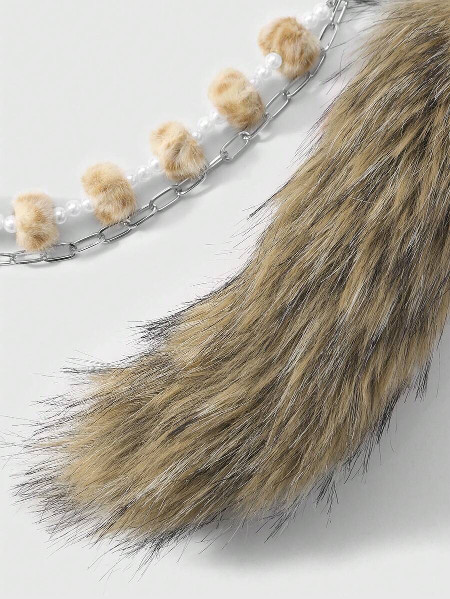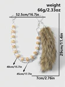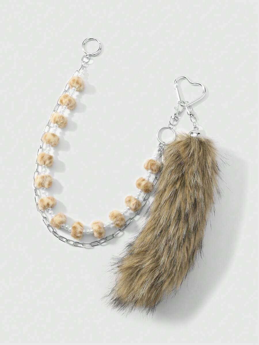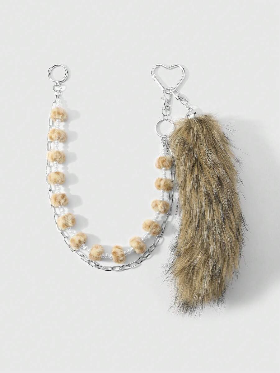 Goth 1 Stück Y2K Retro Chic minimalistischer Mode Hochwertige handgefertigte weiße Kunstperle, Leoparden-Muster, flauschiger Bommel, Cut Out Kette, Farbverlauf Cartoon Tier Fuchs/Wolf/Waschbär Schwanz DIY Hosen Kette, Taillenkette, Taschenbehang, geeignet für Cosplay, Alltagstragen, Geschenk