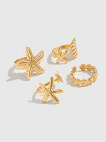 Goth 4 Stücke modische Ozean Stil Ringe - glänzende Seesterne, Muscheln, geometrische Metallringe, offene Ringe. Geschenke für Frauen, Töchter, Ehefrauen
