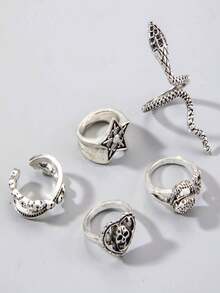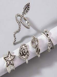 Goth 5 Stücke Funky Zinklegierung Schlange & Totenkopf Dekor Ring für Frauen zur täglichen Dekoration