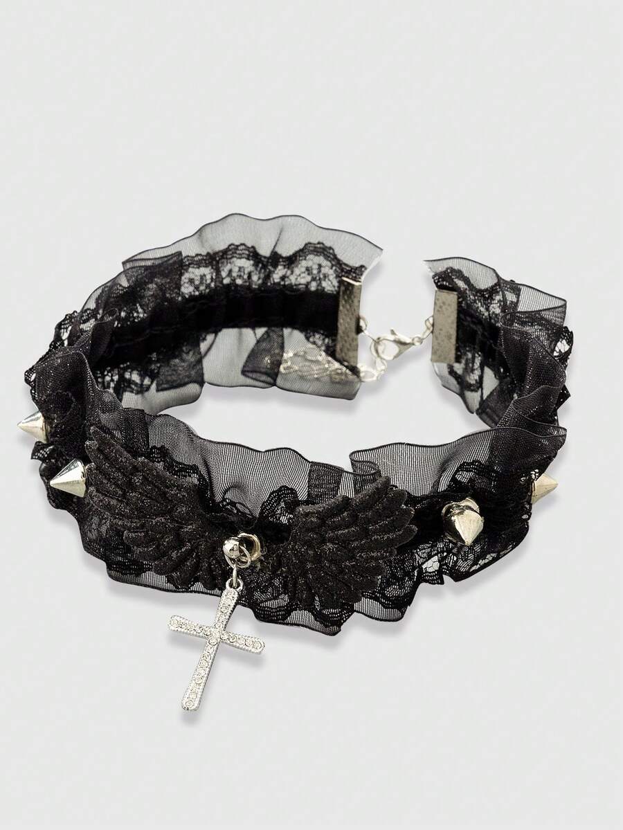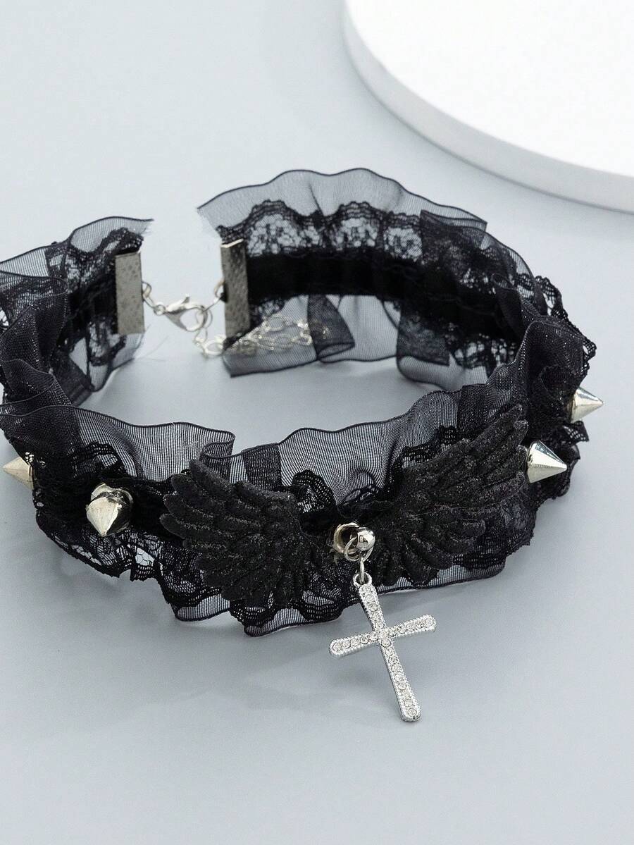 Goth 1 Stück Halskette Engelsflügel Schwarz