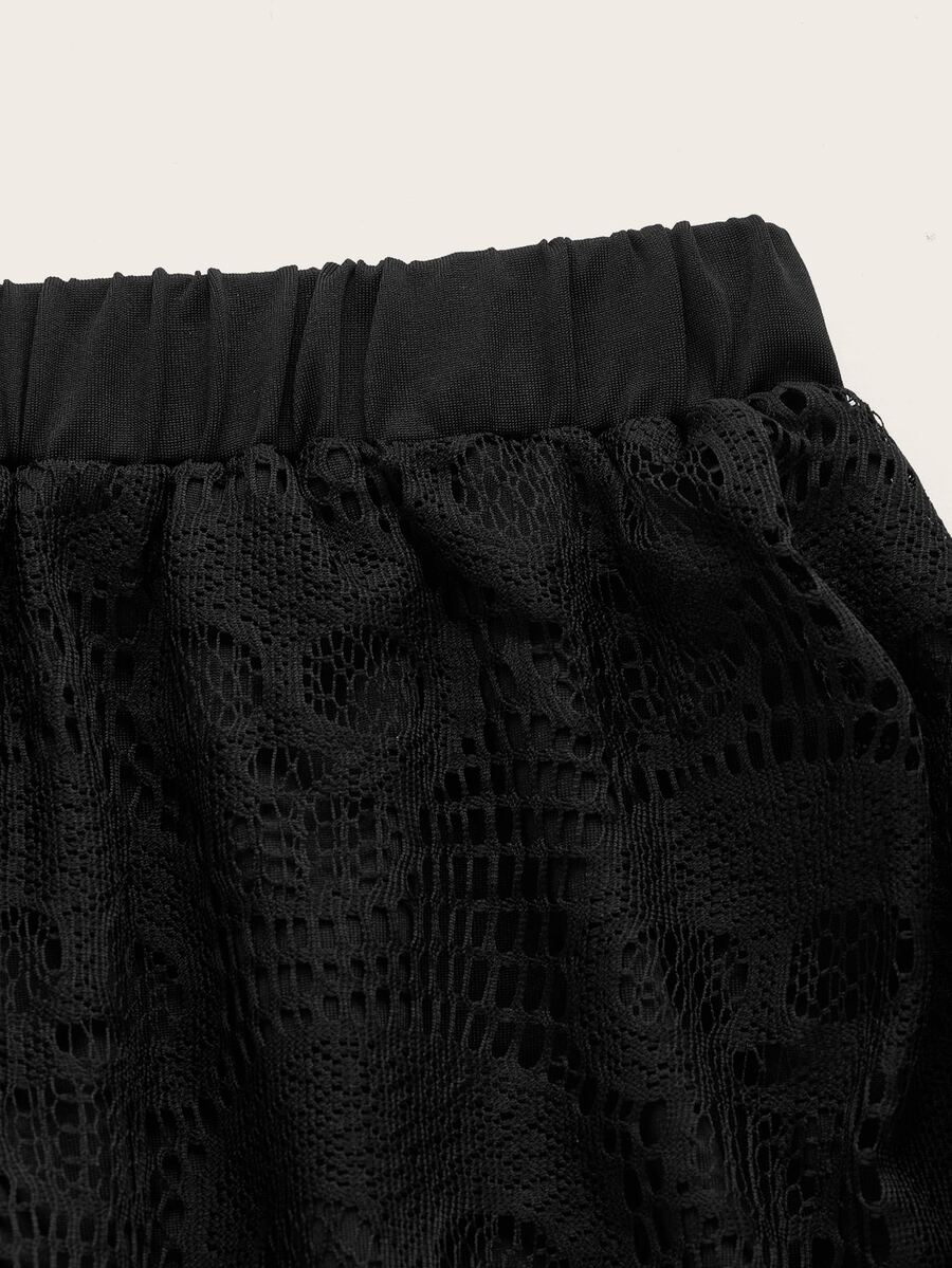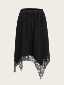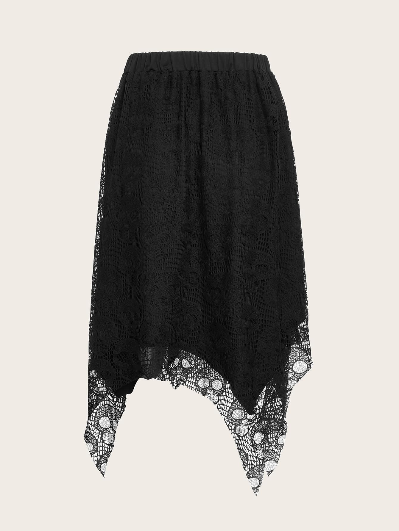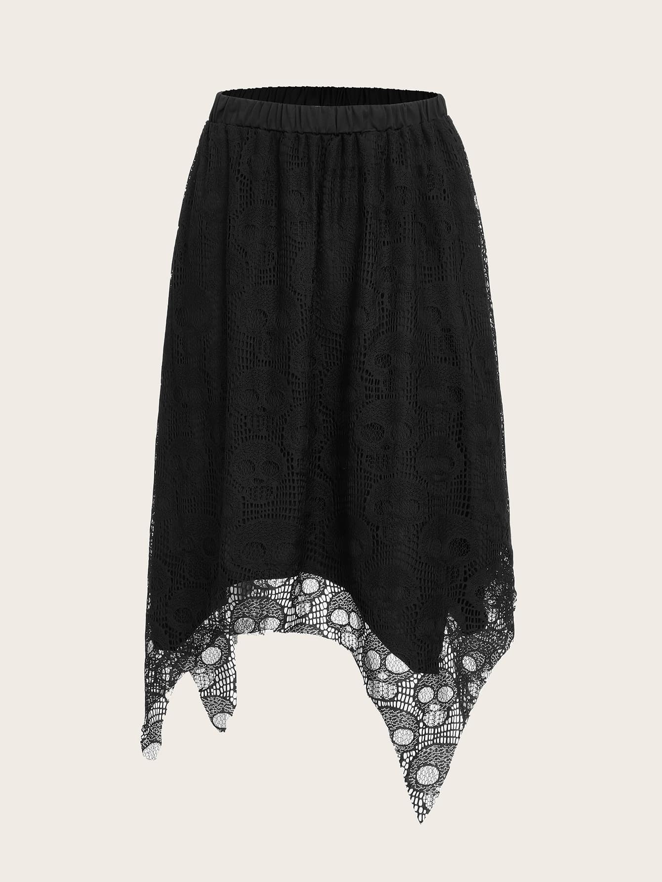 Rock mit Kontrast Schädel Spitze asymmetrischem Saum