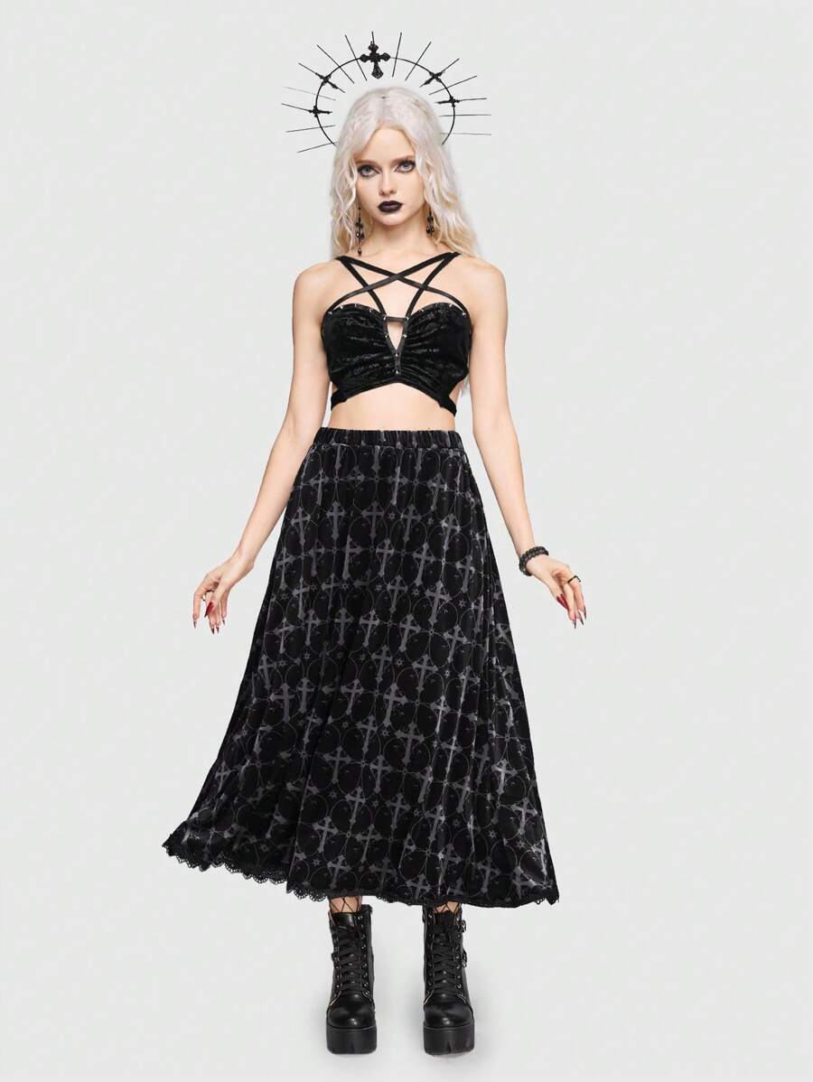Goth Cami Top mit Kreuzgurt vorne,
