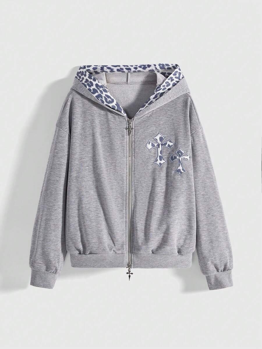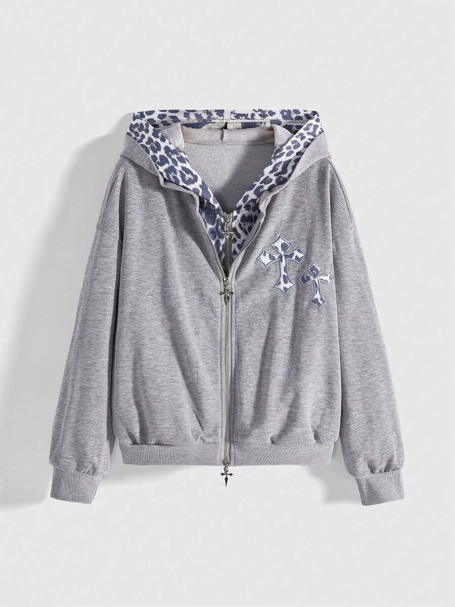Goth Kreuz & Leoparden Muster 2 in 1 Sweatshirt