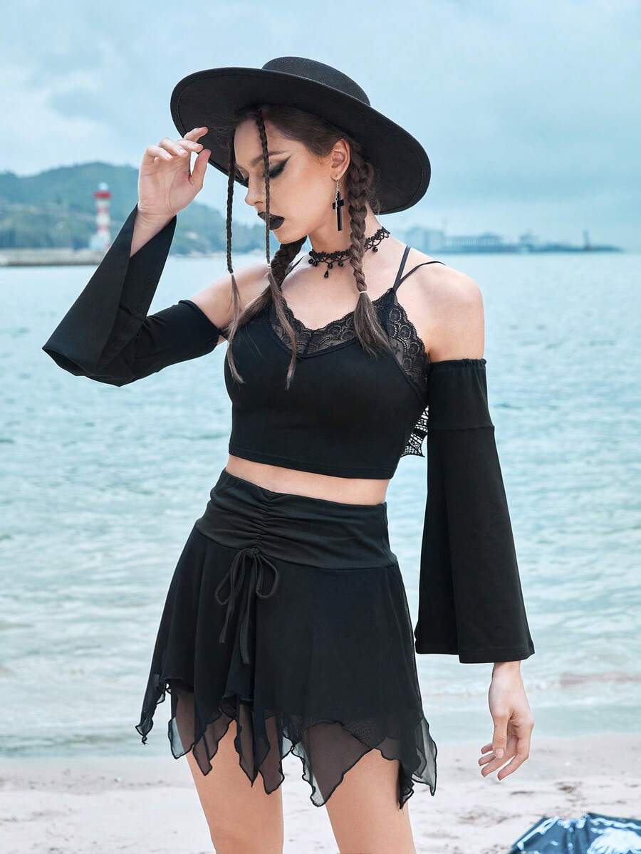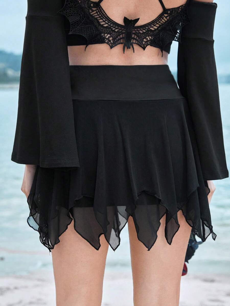 Goth Rock mit Schnürung vorne, Zipfelsaum,
