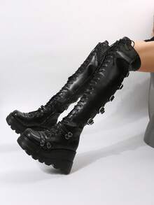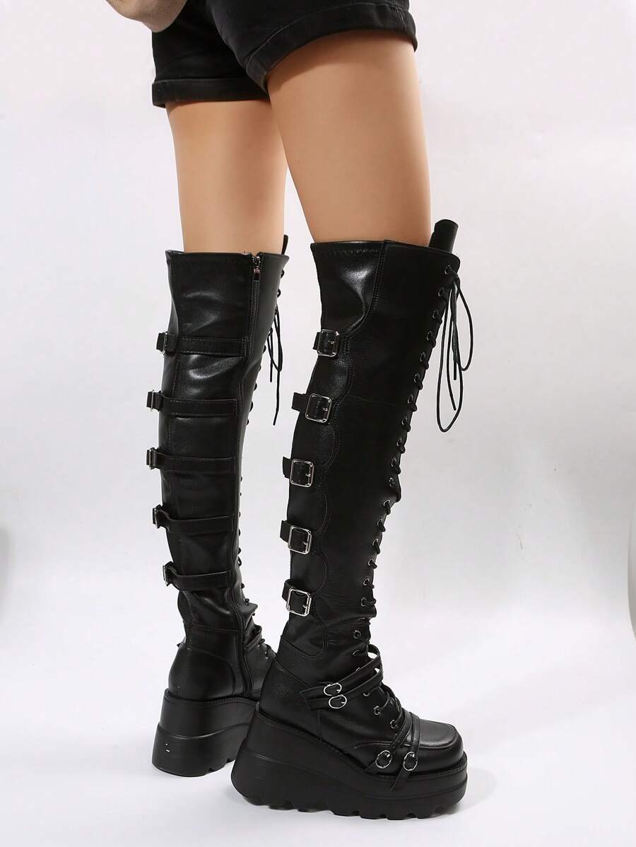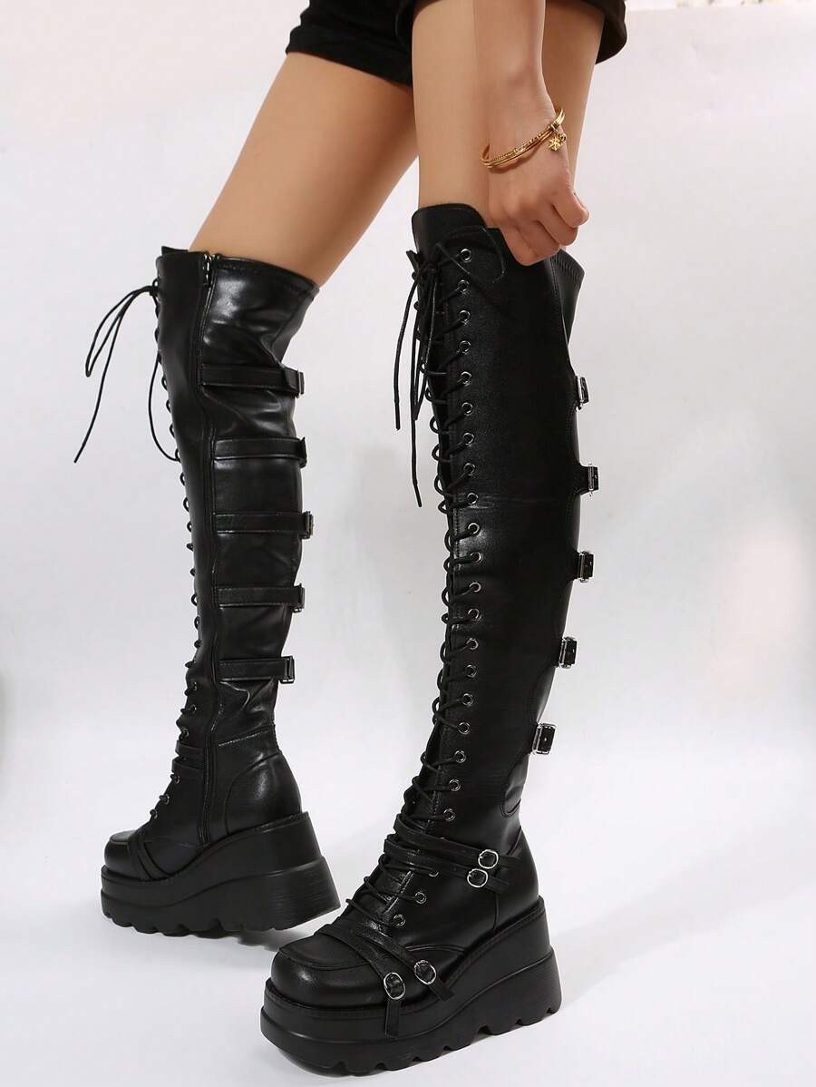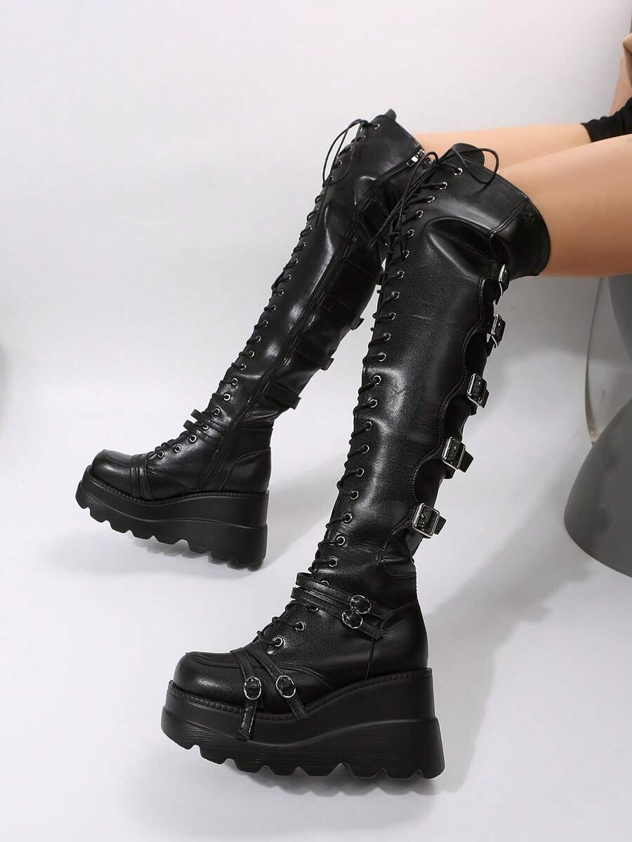 Goth Herbst/Winter Damen Schnür-Keil-Stiefel, Punk Outdoor Stiefel, modische Stiefel