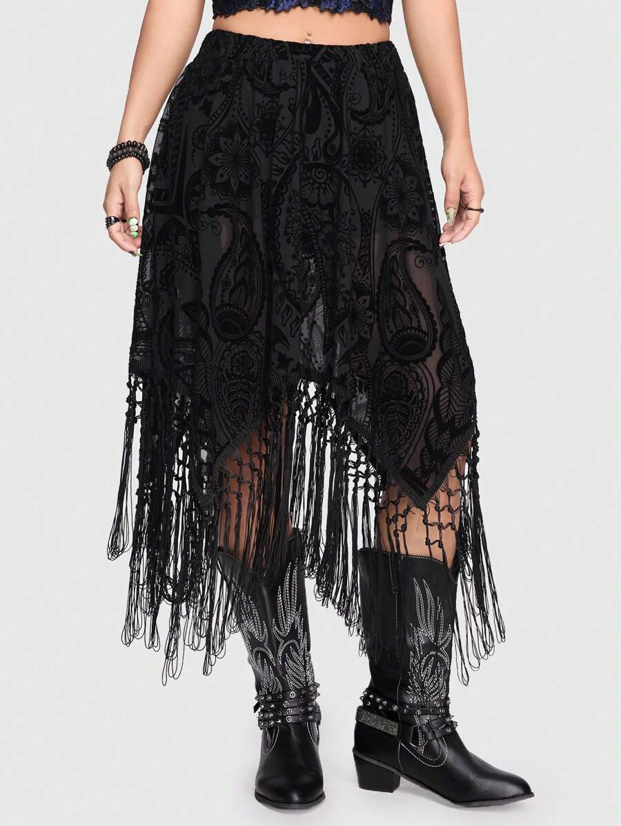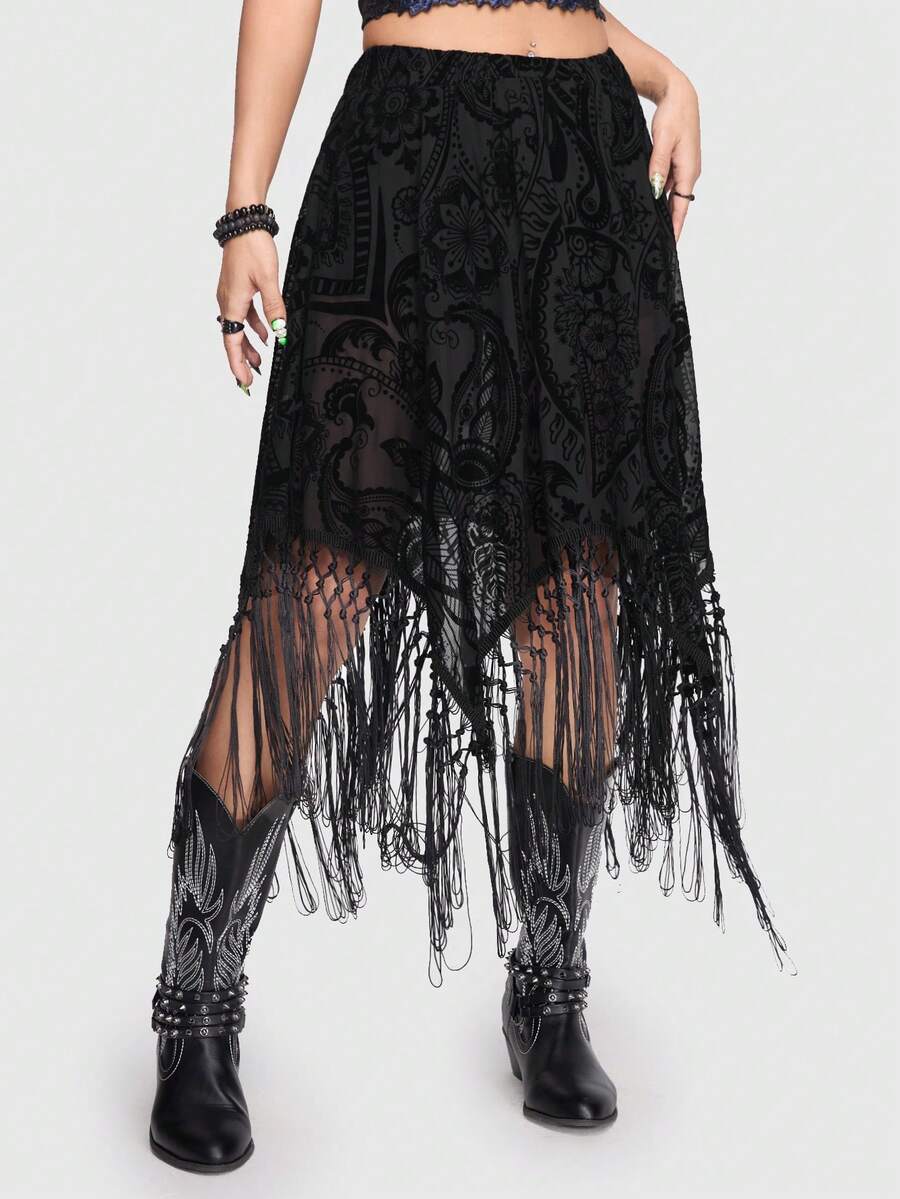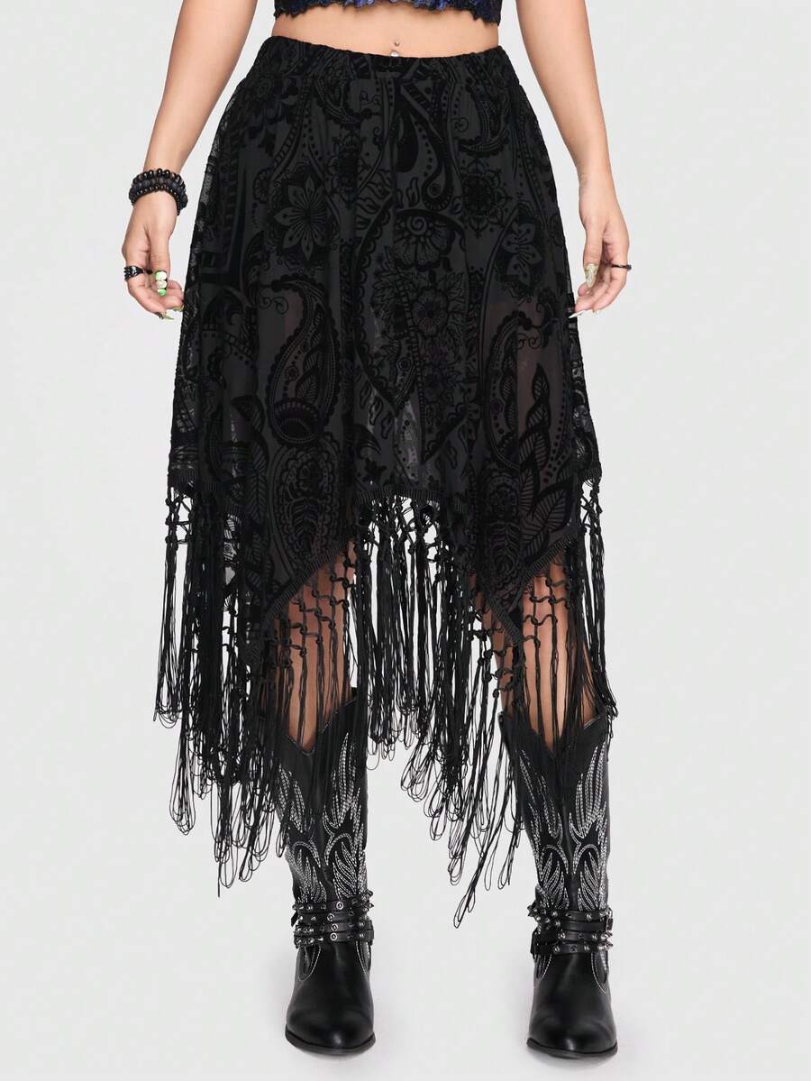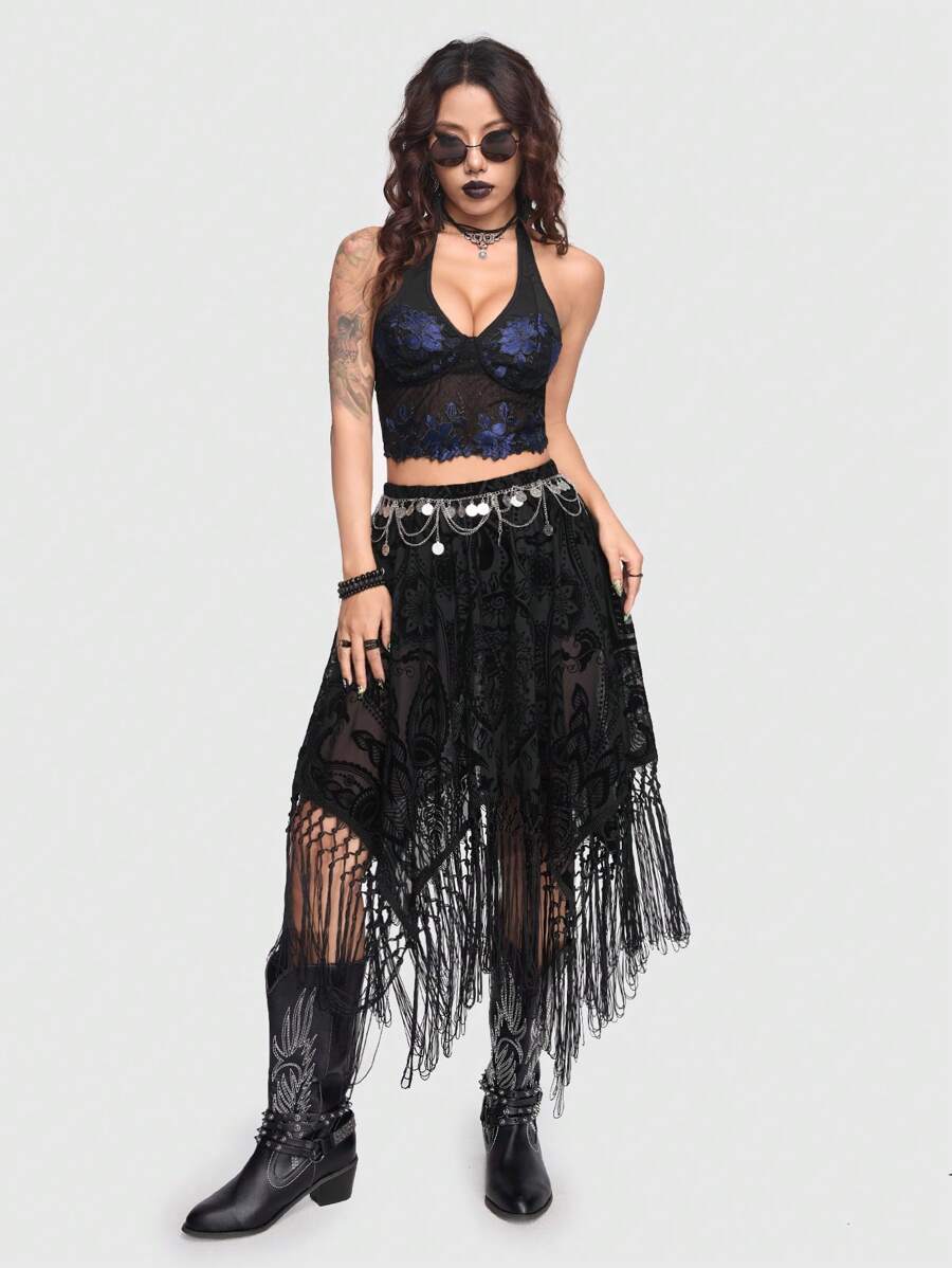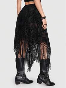 Goth Asymmetrischer Rock mit Fransen-Design und Leggings