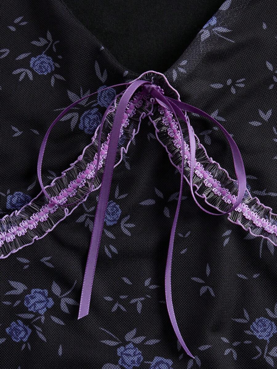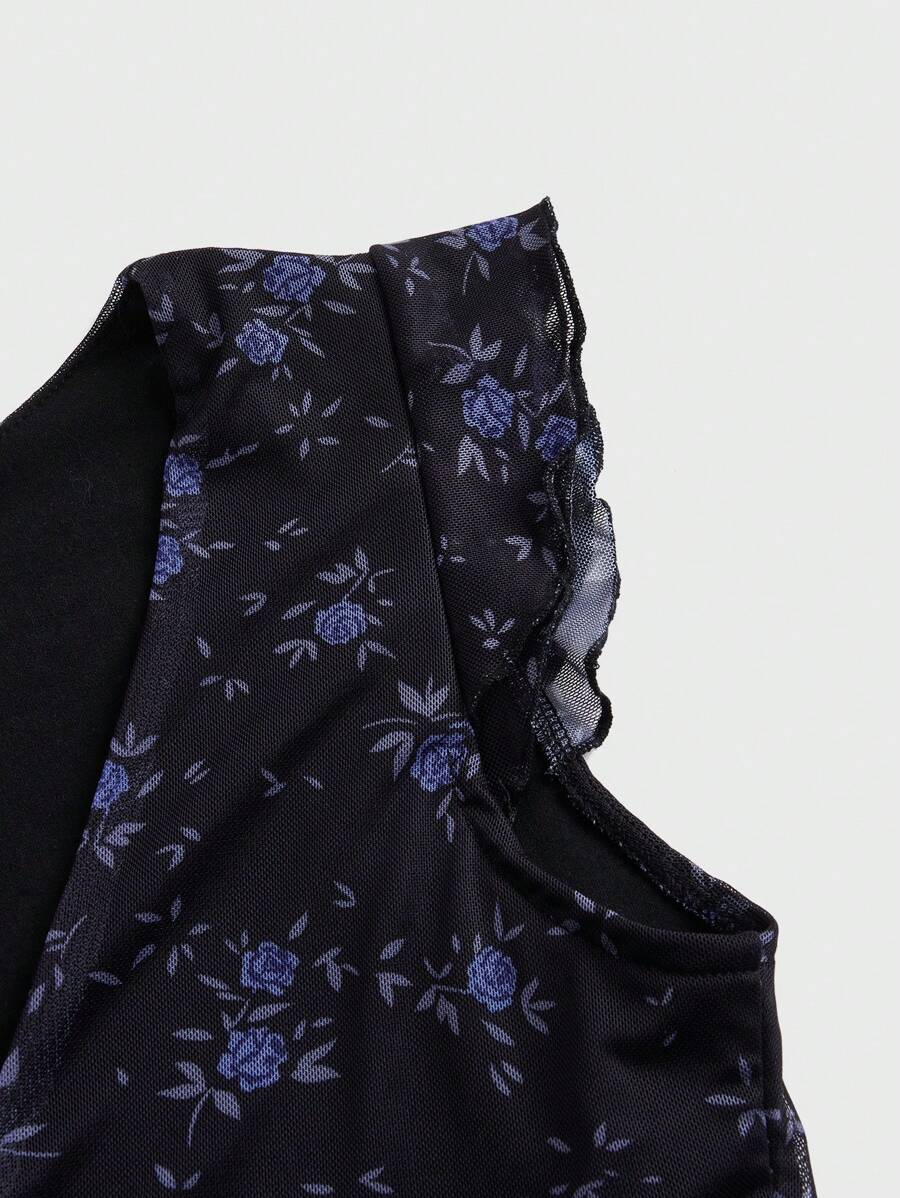 Goth Top mit Blume Muster, Kontrast Spitzen, Band vorne, Mesh