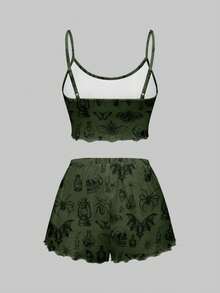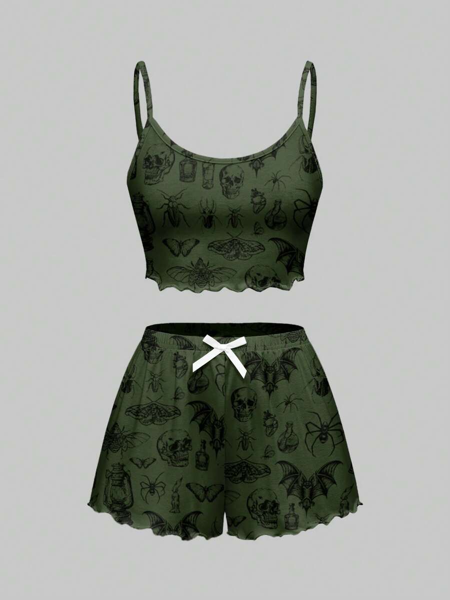Gothic Insekten-Gift Allover-Muster Trägerhemd & Shorts Pyjama Set, Lässig Nachtwäsche