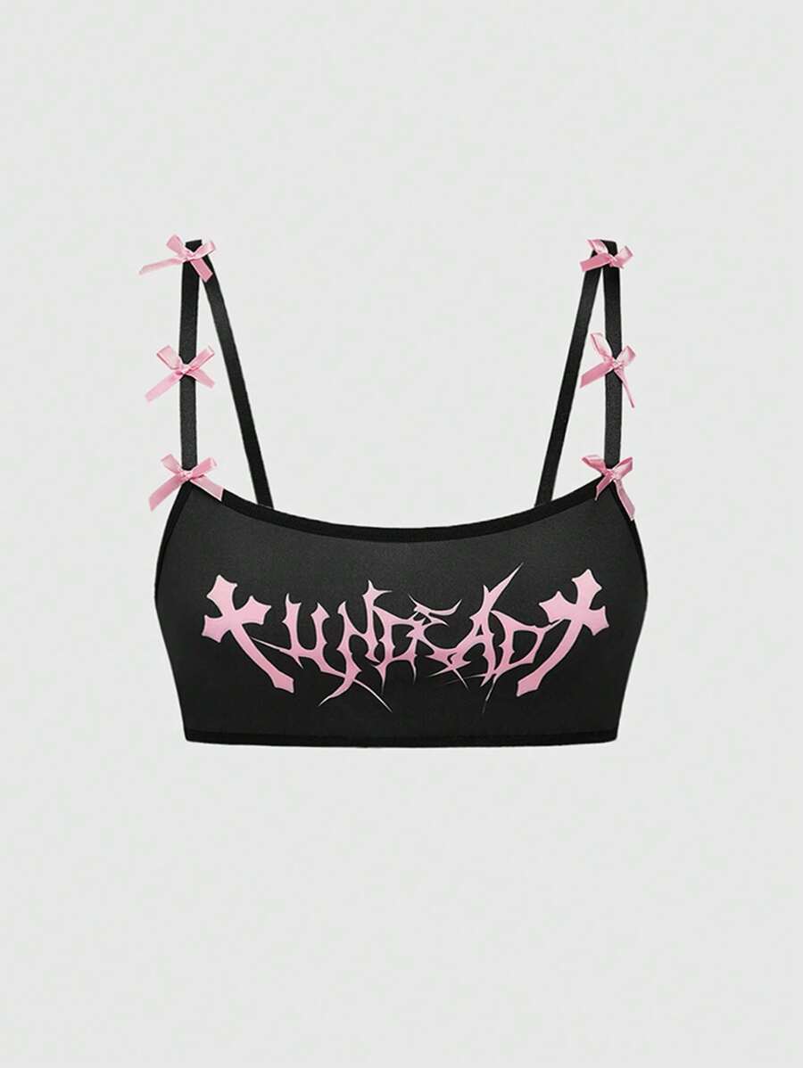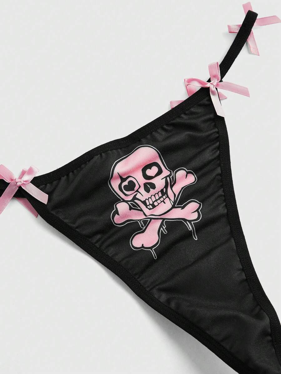Gotisch romantisches Skelett-Schrifttypen-Gothic-Spaghetti-Träger-Schleife-Tanga Dessous Set