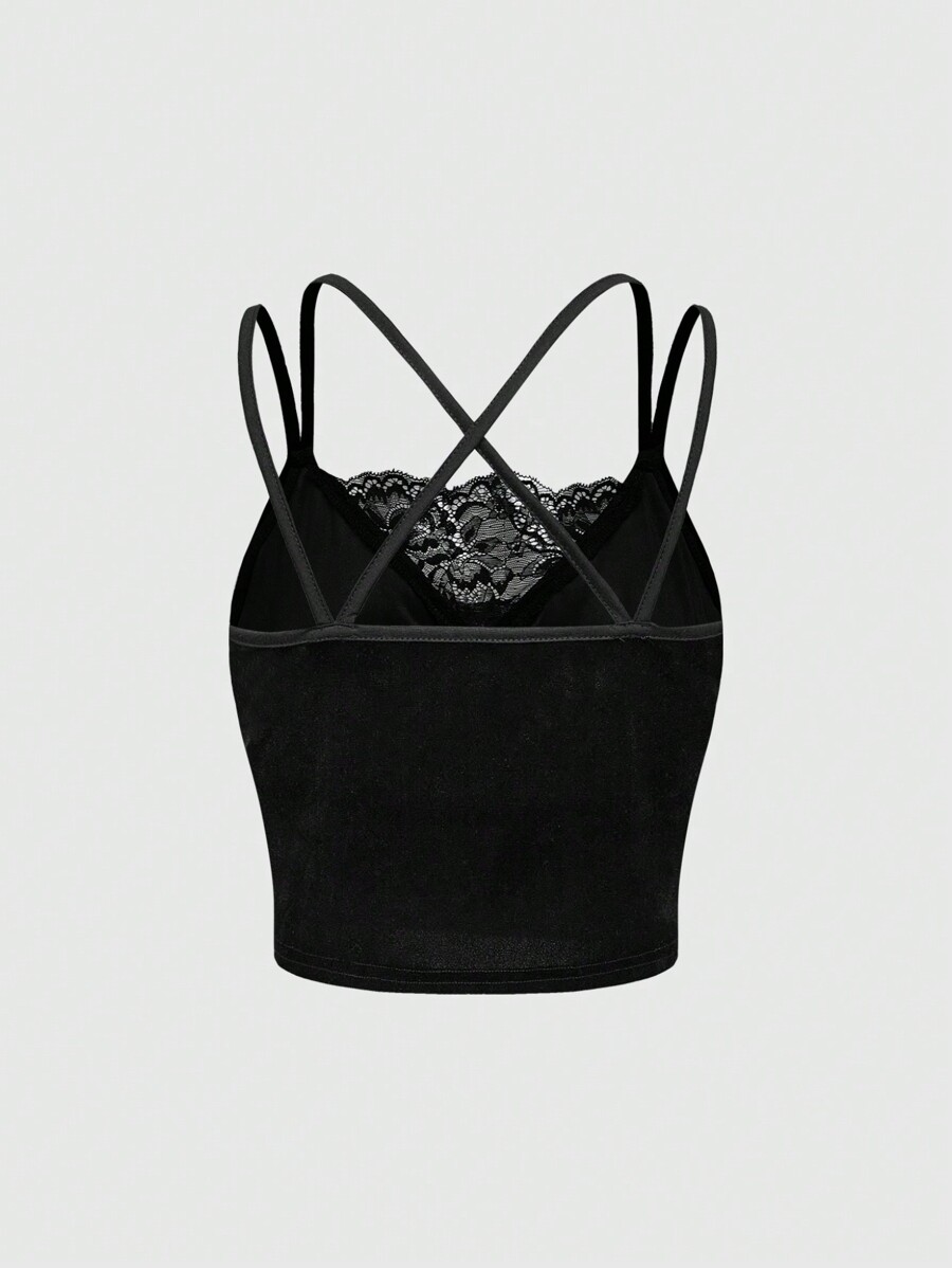 Goth Gotischer Stil Samt-Spitzen-Trägerhemd & gekreuzte Rückenshorts Set, Lässig Homewear