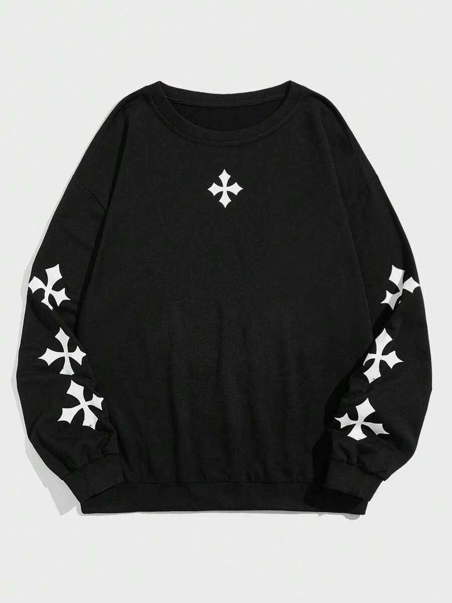 Goth Männer Sweatshirt mit Kreuz, Muster,
